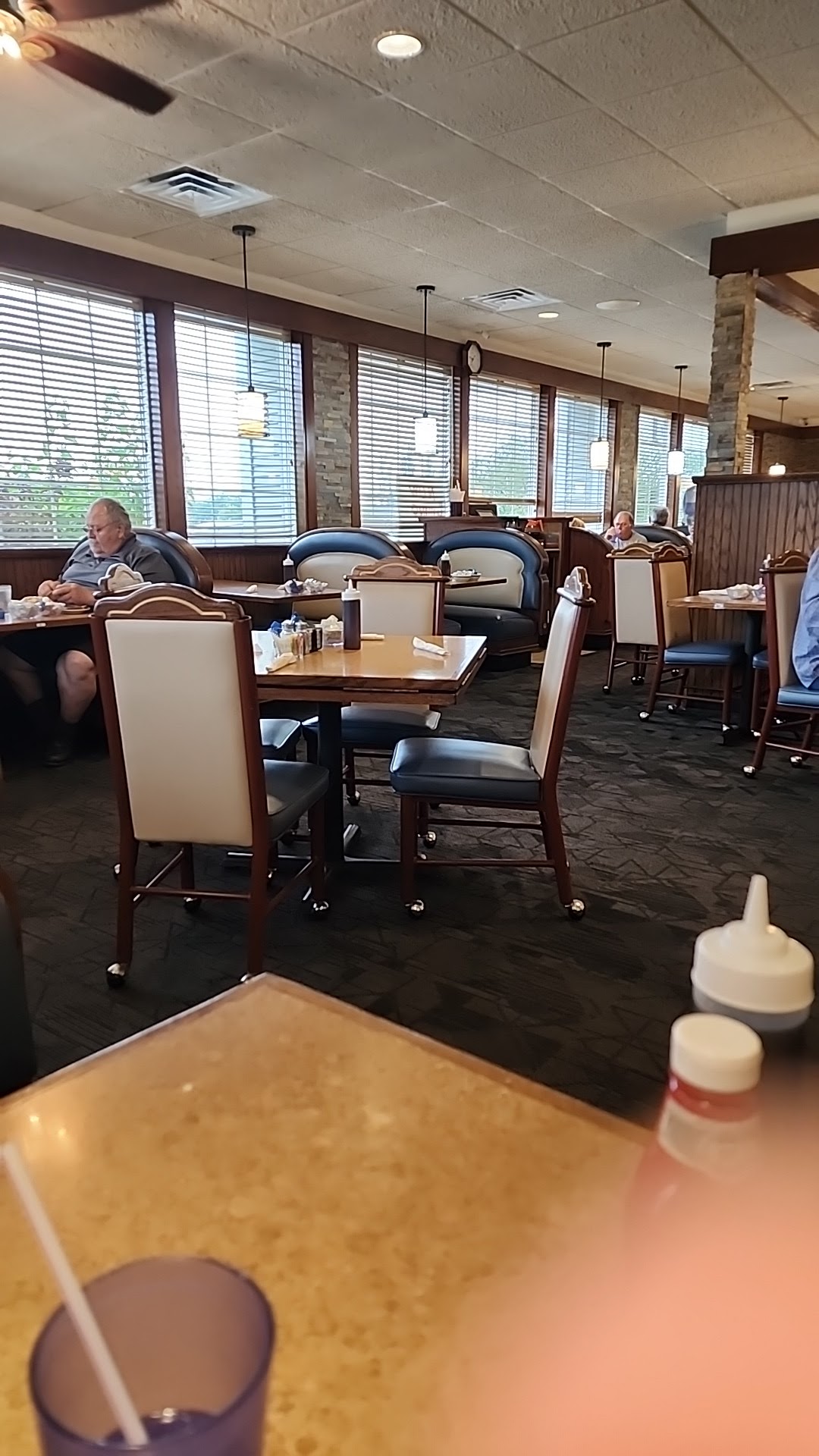 Slooowwww! Stopped for a late breakfast after church. Plenty of open tables when we arrived, but it took several minutes for someone to seat us. Table was still wet from cleaning and a bit sticky. Took probably 5 minutes before waitress came to our table. We placed drink and breakfast order as soon as waitress showed up. Another couple minutes to get our drinks and a few more minutes before we got ice water. The meals, which were not complicated, took 10 - 15 minutes. Food was pretty much what you would expect. Nothing to write home about, but good. Didn't get silverware. Had to ask. First drink refill was not prompt, neither was second refill. No bill given. Finally h ad to ask for it. I can understand some of the delays, because they were fairly busy. But they should have had someone filling drink orders and making sure tables were cleaned and dry and that customers had silverware. When I went to the cash register without a bill, I felt as if she was blaming me for not having it and not knowing who my waitress was. And again I felt like she expected me to run down the waitress for my bill. We will give them another chance. If not better at that time, we'll be done. We returned for breakfast today. This was the second chance. Waitress was not friendly. She barely spoke to us. Never returned to table after we received our food to see if we needed anything. I would rate the service a 1 or 2. Management can train better! Food was below average and barely warm. Poor quality ingredients or untrained staff? The barely warm can be blamed on the waitress or the kitchen staff or the management. Call it out for delivery as soon as it is done, pick it up immediately and deliver, if the waitress is busy then have someone to help. Not too difficult to figure out. We...