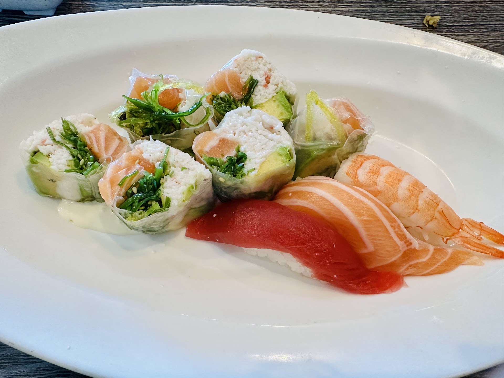 Again, wasn’t terrible, the meat was fresh enough (minus the scallop), & the portions were sizable (tho TOO big for individual slices of sushi/ sashimi IMO), but between the inattentive service & the dirty plate, plus gummy rice & a lack of variety, this isn’t really a place I need to return to. The hunt for a good sushi restaurant in fremont/ newark...