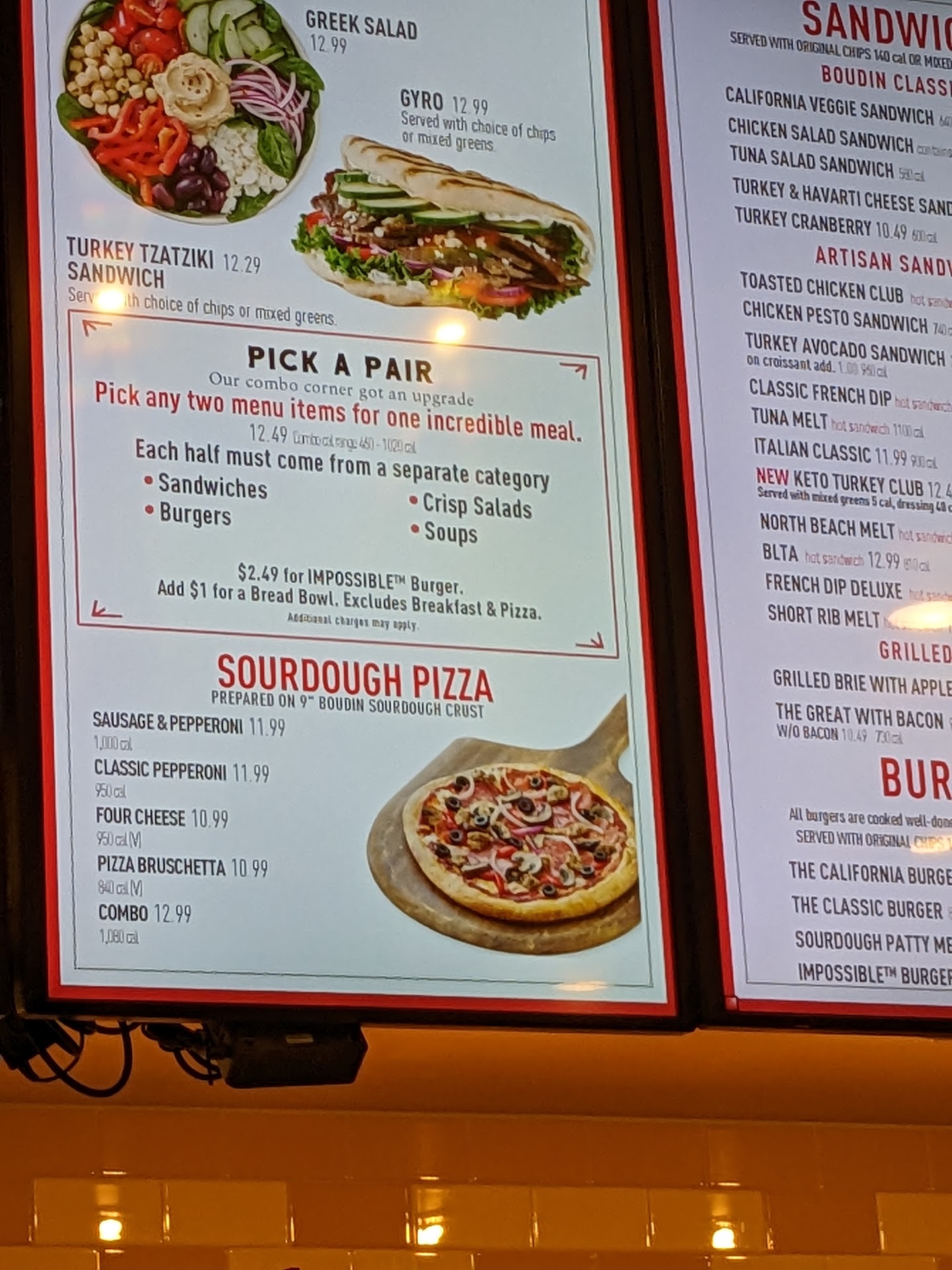 Read moreI got turned on to this franchise via California Adventure Disneyland which served the hands down best theme park sandwiches I ever had. Not sure this is a fair statement because having a Boudin in your theme park and calling it theme park food is like calling the Mickey D in the airport airport food. At any rate, I believe the experience was excellent and will always be good at the DCA because they have such a high volume of patrons to serve that their bread always will be fresh. This is a result of the need to turn out loaf after loaf since you're turning it over so quickly from other to order. So good. Follow it up with a Ghirardelli sundae and you nailed the SF eating experience at a theme park. But I digress... I was here in our local option in the bay area because my kids and their friends wanted food from here and placed a phone order. When I arrived to pick it up... They didn't have it. Seemed it was given away to a delivery person so someone scored a decent package that night. The frustrating part is that they wanted me to prove I had an order vs them having an available record of it to validate my claim against. I ended up spending 5 to 10 minutes trying to contact family to try and get the digital copy of the receipt because the partial screenshot I went in with was not enough for them. They eventually made me another complete order after finding their own record of the list so I had to wait over 20 more minutes on top for it, but stuff happens. Not a great experience but I can't give them less than 4 stars cuz they...