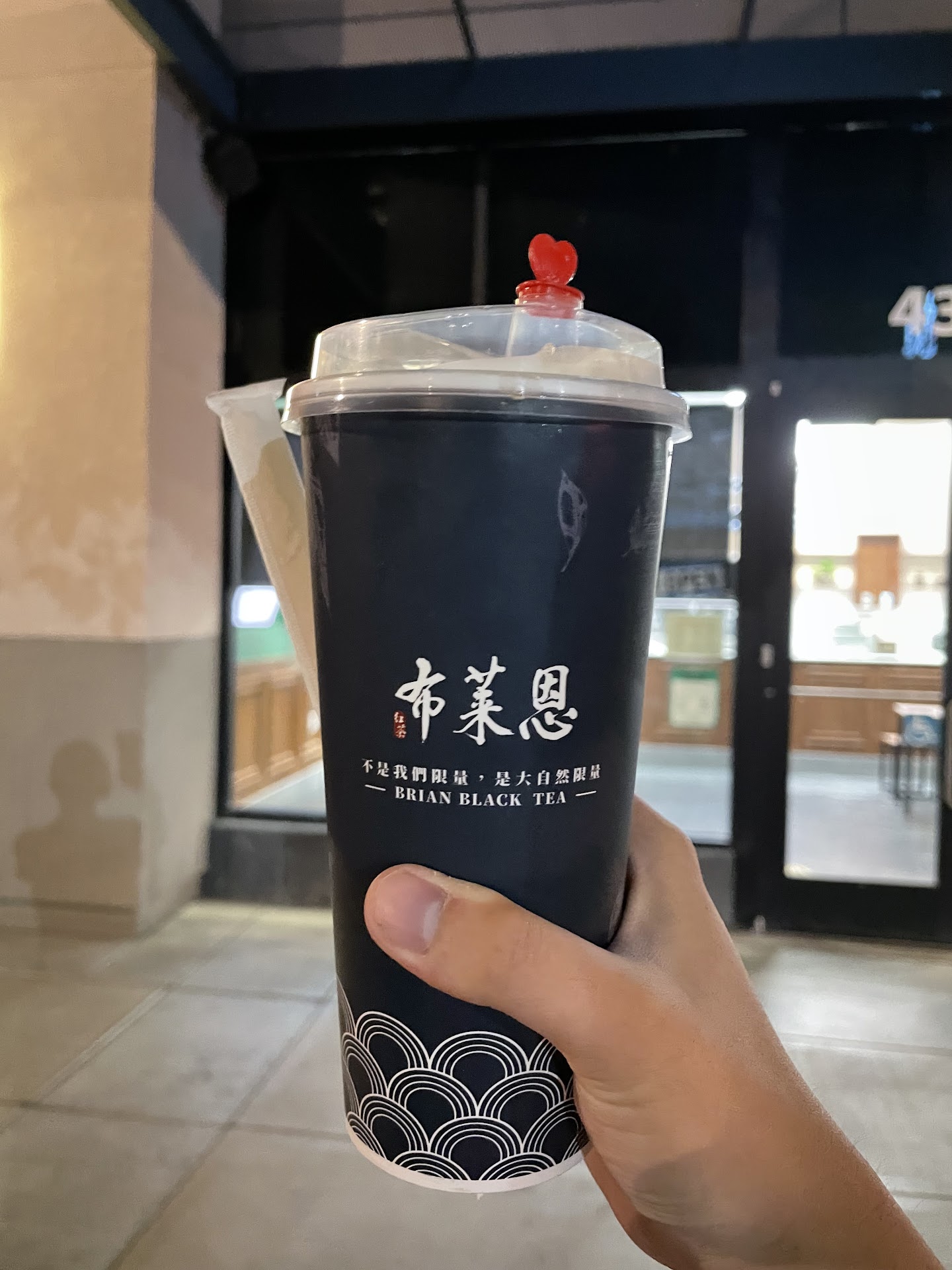 Read moreBrian Black Tea has a nice modern aesthetic. I never seen a non-clear cup for a milk tea before so they stood out in that aspect.