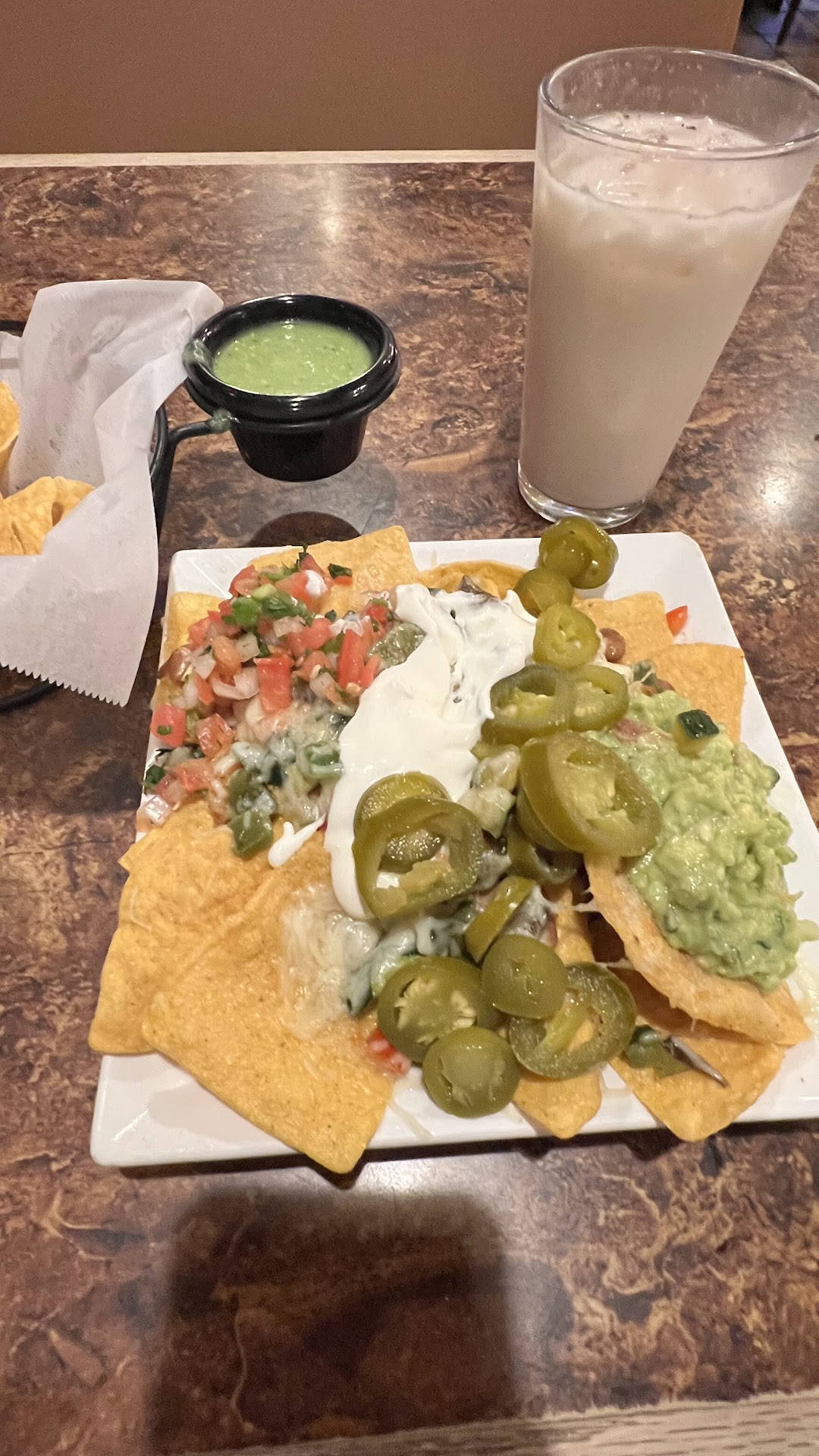 Read moreWent with my wife and a friend to eat here for lunch. I had the nachos with grilled chicken. Very large portion that tasted really good. Lots of grilled chicken, fresh salsa, sour cream and guacamole. My wife and friend, ate right into it. They had the quesadilla and chimichanga. Both good sized and both women said we're really good. My wife hadn't eaten there with the current owners and agreed the food is much better than when the previous owners ran the restaurant.