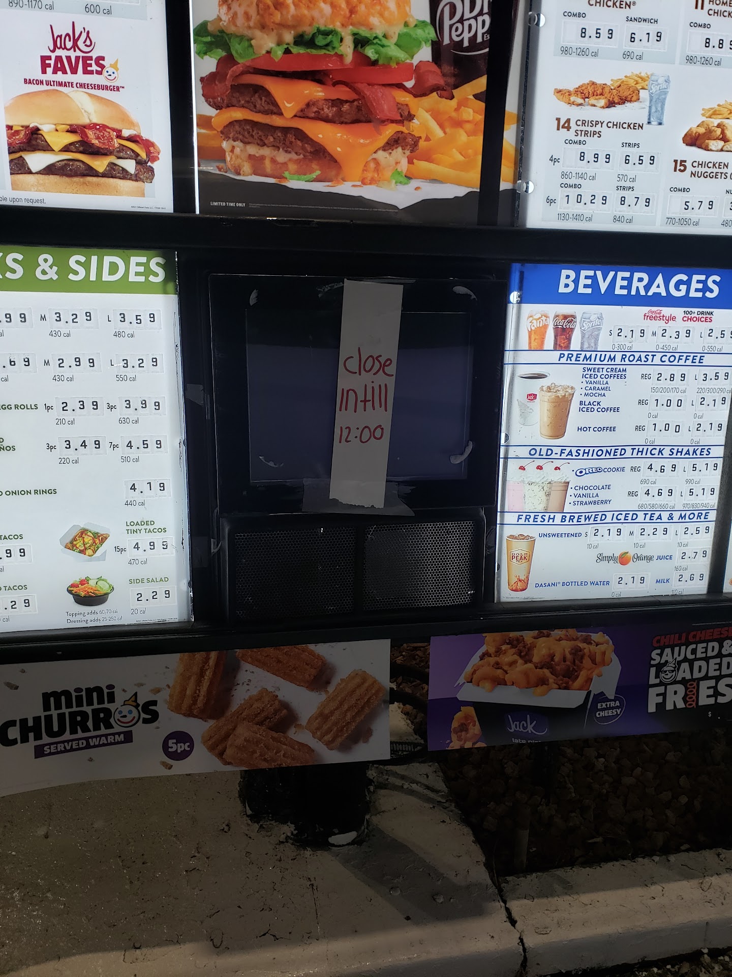 If you're truly looking to enjoy the best that Jack in the Box has to offer I highly recommend visiting the Jack in the Box located on Auto Mall Parkway in Fremont. There you will find a different experience altogether. The food is consistently excellent always prepared with freshness in mind and served piping hot. It truly represents the pinnacle of what Jack in the Box can deliver.