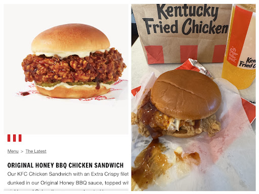 Cons: drive thru starts in the back of the restaurant; seems a bit under-staffed during rush hour; ran out of chicken so we were told to wait (bad preparation for rush hour); store was very dirty; garbage cans were overflowing and needed attention; staff was so busy, they started bickering, but I can't really blame them when they were working their best under a lot of stress and pressure; original chicken recipe was changed or we got something that was crusty and bland; chicken pieces were ridiculously small