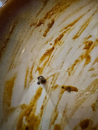 Then came the food, which was truly the "scary part." We ordered several different vegetarian curries, with multiple orders for each table. One curry was inedibly salty. We asked for the dishes to be made "a little extra spicy," but instead, they arrived with an overwhelming amount of uncooked, pungent masala that completely overpowered any flavor. You could both smell and taste the raw spices, making them extremely unpleasant. The most horrifying discovery, however, was in the Daal Makhani. My friend had a whole screw in his bite! This was incredibly frightening, especially with small children at our tables who were also eating the same dish. We immediately lost our appetites and pushed away all the food.
