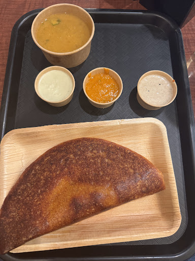 Read moreService and marketing issues: We came here on Nov 29, Friday in the week of thanksgiving after seeing their flyer about unlimited dosa (with some exceptions) Tue- Fri till thanksgiving week. When we entered there were people in two tables already well into their meals and 3 wait staff in total. Despite this we had to flag the waiter down after 10 min of patiently waiting to place our orders. At this point we asked him about the unlimited dosa offer and he said it needed with thanksgiving Thursday and he couldn’t give us the offer today despite us pointing out it said till Friday . We then asked him for recommendations and he said he’s not sure, he has only eaten few dosas himself. So we proceeded to order a peanut dosa and a benne dosa. Then the peanut dosa came in about ten minutes and a good ten minutes later the benne dosa appeared. The peanut dosa was much bigger than the disposable plates and they flopped it around on the counter which is unhygienic. The plates can easily be made bigger or the dosa folder before serving to avoid this. Then we again flagged the waiter down to ask about the happy hour advertised on their menu from Tuesday - Friday 2-6 pm since it was a Friday and well within the time window. The waiter told us the offer starts only next week and asked us what else we would like to order. We decided to end our meal there and paid at the counter and left. We were provided kids on asking for our sambar and chutney .