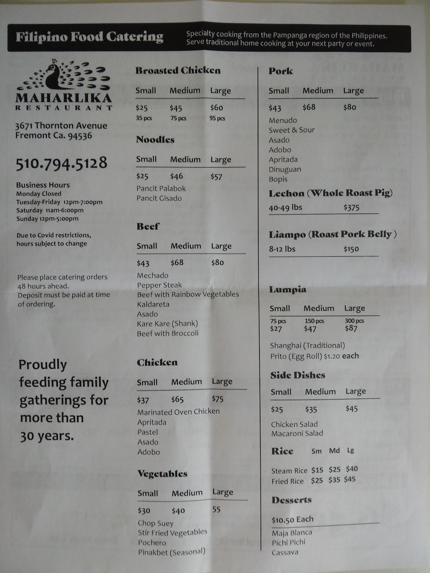 Read moreMaharlika is my new favorite spot for Filippino take out! This mom and pop shop is cash only, and take out only. They offer fabulous prices and generous portions. Their signature broasted chicken is incredibly crispy and juicy, a definite rival to other fried chicken places. One of my favorite dishes is the signature pork sinigang- a tangy tamarind soup. We also had the chicken adobo which melts in your mouth. Daily combo plates are only $6.50 and come with two generous items + rice. The owner is super nice, I wish I...