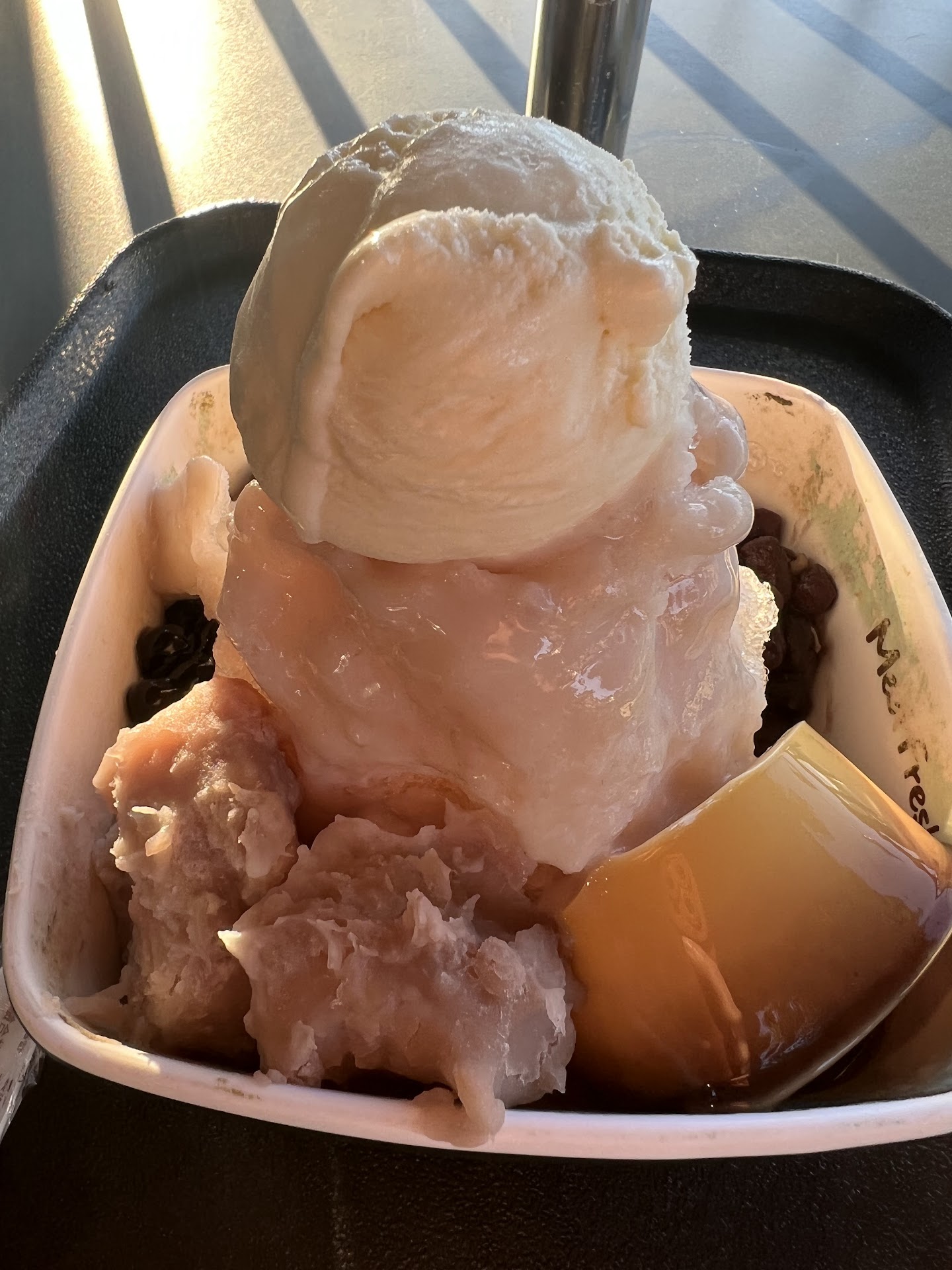 Read moreThis place was very well managed, cleaned, and beautiful. It is a great place for celebration or couple’s first date. Their Taro Paste Volcano shaved ice combination bowl is very smart. It is has a treat for everyone. Caramel pudding was very soft with a pleasantly strong caramel flavor, taro past was not too sweet-well balanced, taro balls were very soft and smooth (reminded me of a perfect cooked gnocchi), red beans were very well cooked still in bean shape but soft, bobas were lightly chewy but soft, shaved ice had no much flavor but a great addition for the chill, the vanilla ice cream on top created the flavor bomb for the whole bowl. Every bite was so fresh. The price was quite hight. A medium size of that was 11.58 after tax plus at least 15% tip suggested. A big bowl to share for two would total up to be about 18 dollars. It is definitely something worth trying at least once. I also found out that this place is also available on the east coast for...