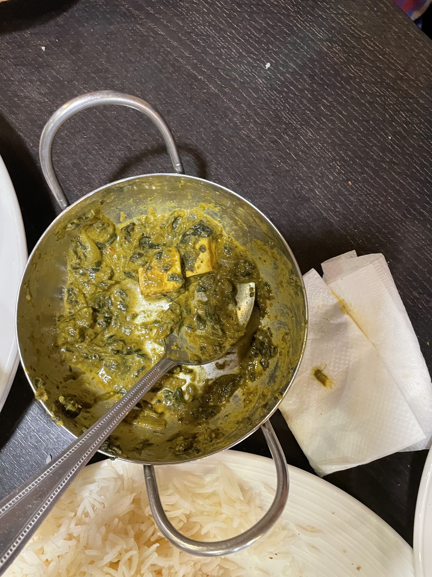 For our main course if you will , we ordered a vegetarian calzone , palak paneer and a chicken tikka masala (where the panner and chicken were served with rice and naan IIRC). Amazing taste and all of these tasted great. Even though the place was busy the wait time wasn't nearly as bad as it could have been and the hosts had amazing hospitality.