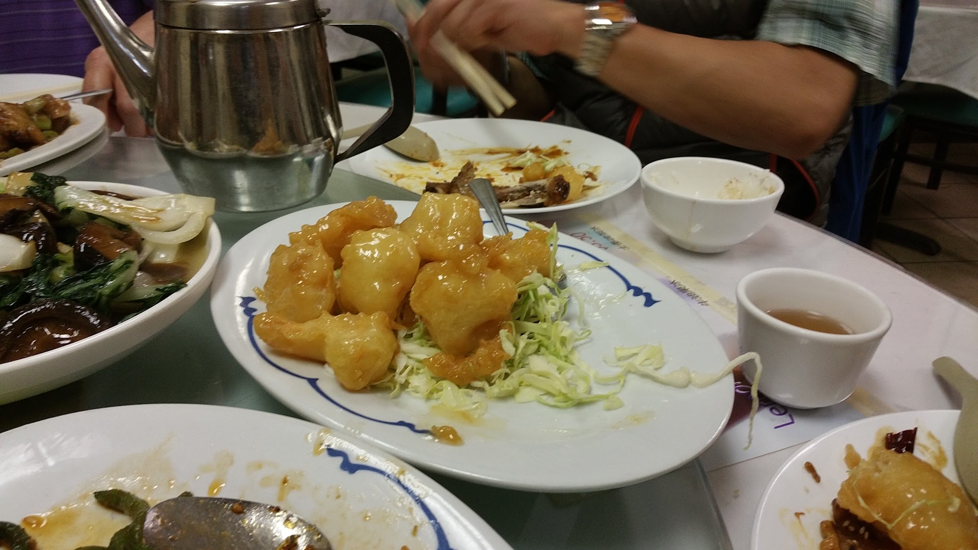 I'm very sad. This used to be a great place and a great value. We haven't been here for a couple of years but we were so very disappointed on this latest visit. I forgot how large the portions were here so we ordered way too much food for 5 people. We ordered six dishes and three would have been plenty. Unfortunately while the service was excellent and the prices or little, the food was extremely Bland. As an example, we had the salt and pepper pork chops. If no one had told me what they were I would never have guessed that they were the salt and pepper dish. And when it's done right it has a very distinctive flavor. And that was typical of all the dishes. One of our previous favorites was the spicy crispy chicken wing. These were neither spicy nor crispy and had a very bland glaze on them. The only dish that was decently flavored was the spicy garlic eggplant.