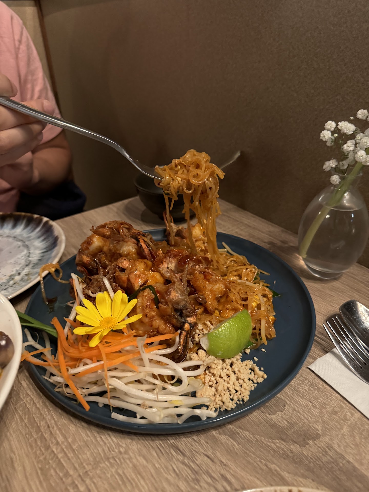 I came here for my mom’s birthday, and we just had seen this place and decided to go here instead. We ordered Tom Kha, Garlic Prawn, Crispy Tofu, Pineapple Fried Rice, Spicy noodles, and Mango Sticky Rice. Overall the portions were somewhat small but the quality of the food was really good, however the prices were slightly overpriced. The Tom Kha was rich with flavor and the spice was perfect. The Garlic Prawn was nice, flavorful, and crunchy. The Crispy Tofu was crunchy on the outside and soft in the inside. The Pineapple Fried Rice was fresh and was flavorful. The spicy noodles were not too spicy and overwhelming but was good with the spice. And the Mango Sticky Rice was beautifully presented and overall delicious. So overall the food beautifully presented, delicious, slightly small in portions, and slightly overpriced. But I would come back every now and then, so I recommend this place to people who would want to try high...