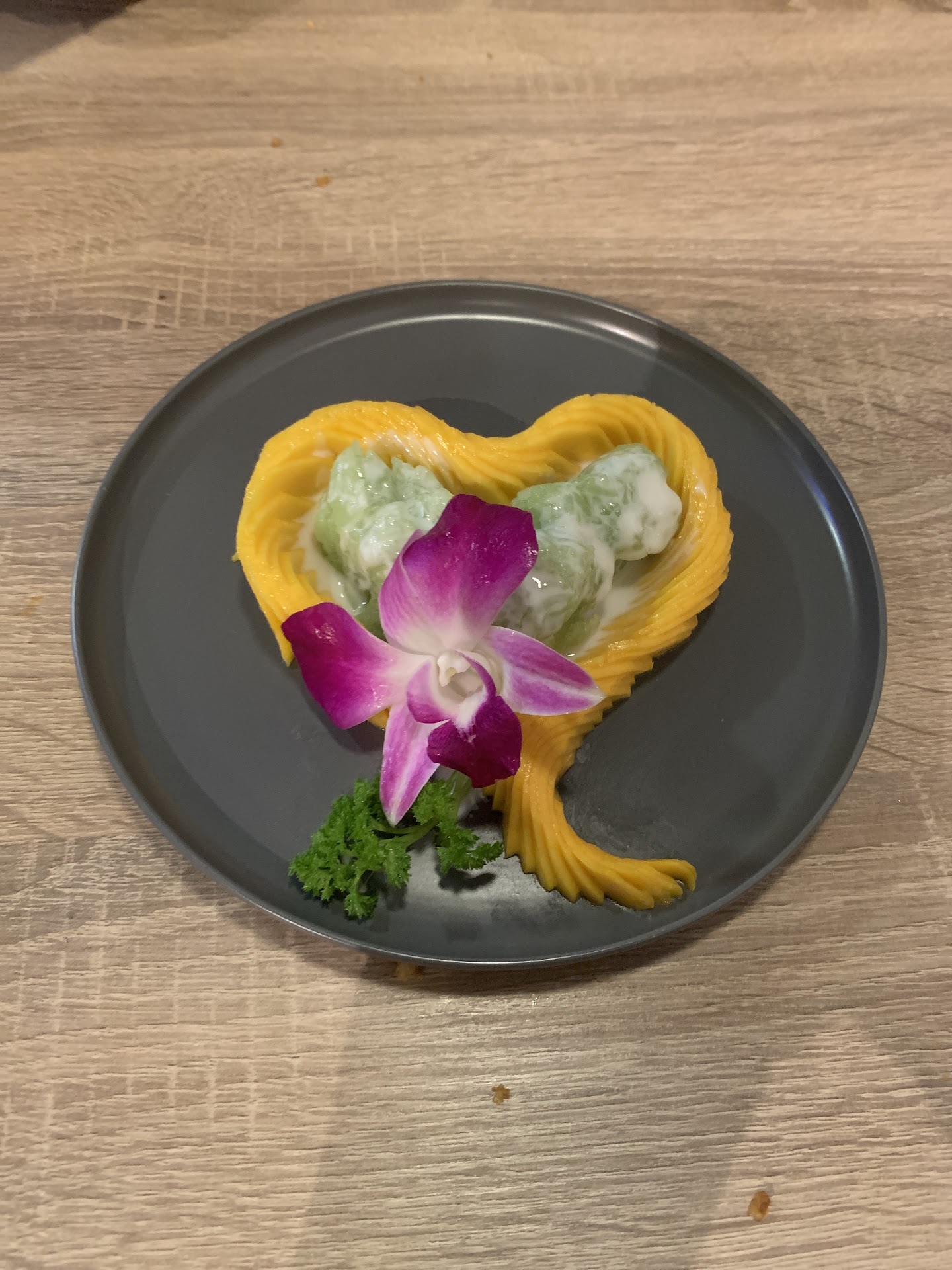 Read moreI want to give this restaurant a good rating but at best, 6.5 out of 10, and possibly 7 is being generous. The positives are, it's a good date night spot, almost romantic vibe. The food seems upscale wannabe presented nicely in pretty tableware. The flavors are mild, and not intense so its adapted to most folks. For those that suffer from gout triggered by anchovy based fish sauce, fear not. The chef only uses salt for flavoring. You can ask for chilli fish sauce table side for those that want to enhance their selected entrees. The menu selection is more than ample to represent Thai food. The dessert may have fancy names but don't be fooled. The negatives is simple. The staff conversations are loud enough giving the place hair & nail salon vibes. Enough said. Will we come back? We do prefer more intense Thai flavors. In a pinch, sure but it won't be our first choice. However, we are glad it's in our...