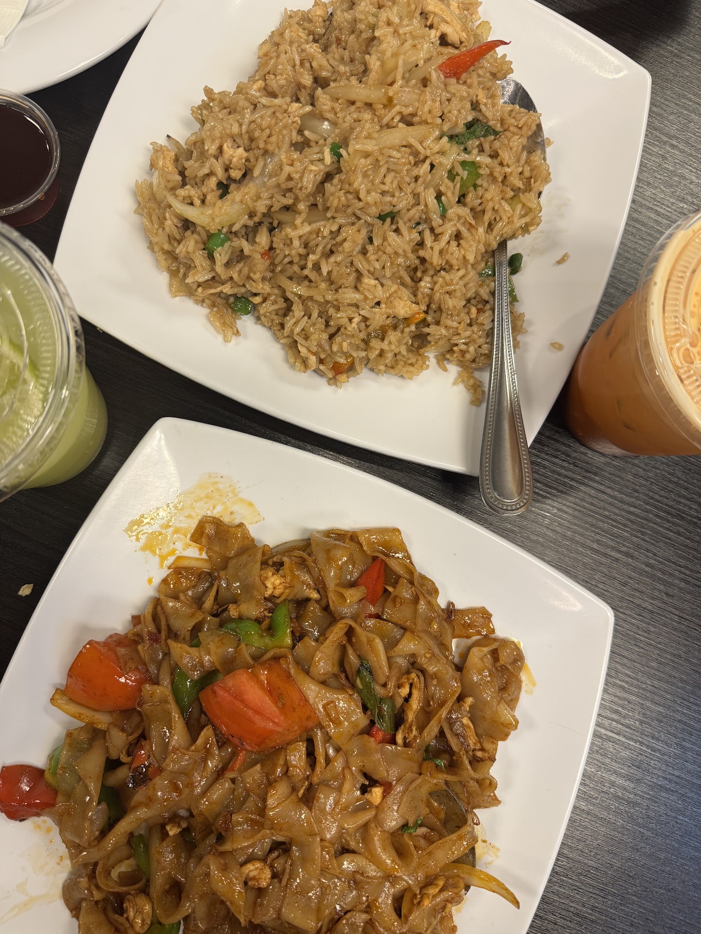 For the entrees, the spicy basil trout ,pad thai,and basil noodles along with Drunken chicken noodles ,all turned out great.