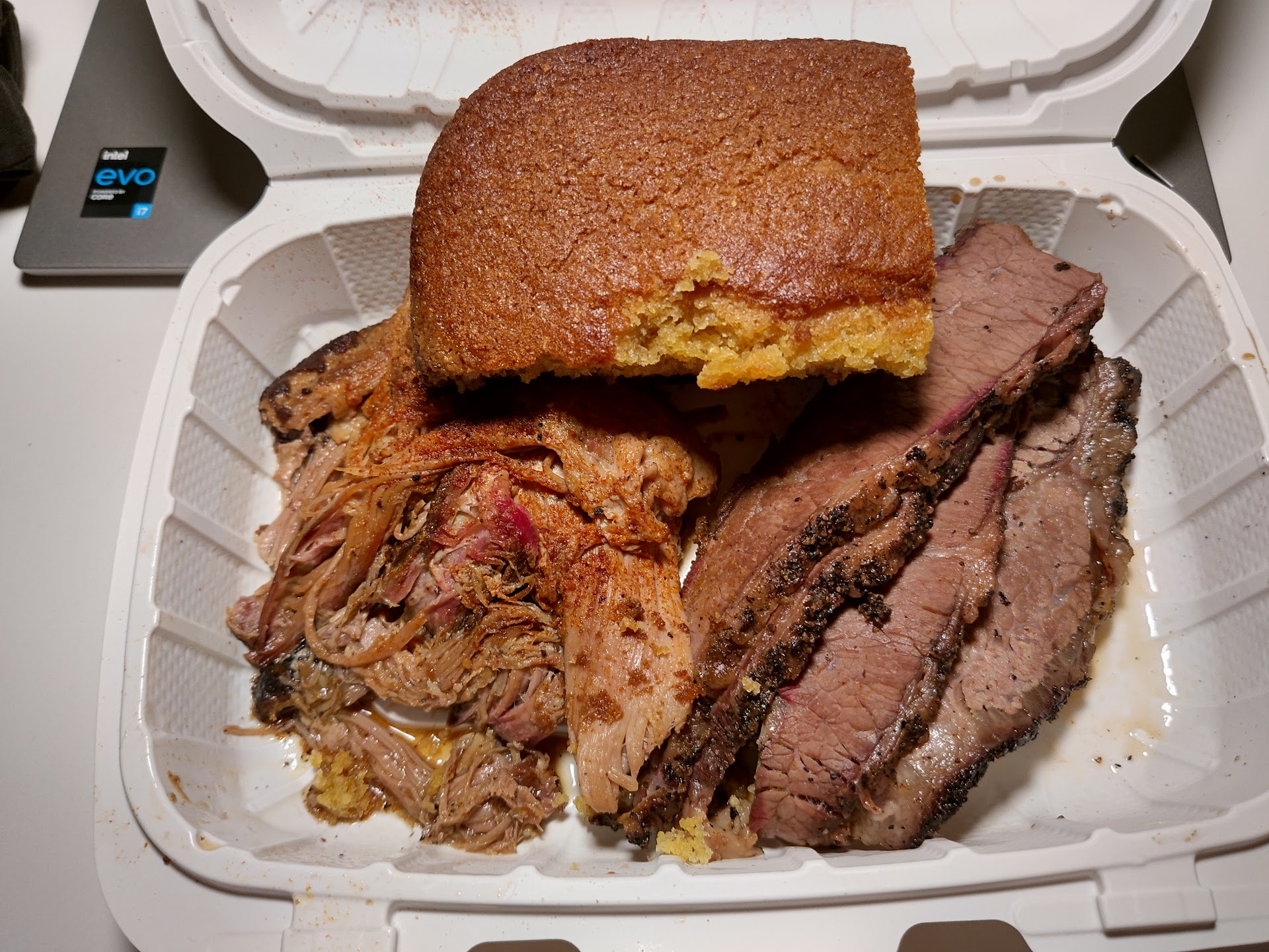 Read moreWent to eat on August 9th for dinner and had a combo plate for my son: pulled pork and brisket with beans and white rice (really a side dish?), and I had a large plate of their rib ends with their version of what they refer to as potato salad. First, the total came to be around $46 and some, but the portion size was like getting a full rack of humming bird ribs - ie tiny! (Well, more like chicken ribs!). The food was insipid at best and flavorless and DRY as all heck. Their sauces are flavored sugar to add to the honey drizzled on top (I call it honey for lack of a better description). The white rice was just steamed white rice. The beans were sugary but very potent and could potentially be considered "chemical weapons" after the effect they had on my stomach. The potato salad was awful! Now that I have reviewed the food as lousy and pretty much crabb(pp)y, let me tell you what the MAN in charge tried to do! After I ordered my food, which I had to carry out myself (and they wanted a tip?), I was charged. I paid with my credit card and signed for the purchase; unbeknownst to him (da MAN) I always get an email notification with the information about my charge. Obviously, the charge had gone through. While sitting down outside, but prior to trying to eat the swill, the guy came out with his POS, and clearly stated that my card HAD NOT GONE THROUGH and that my bull was now $54 and some! I simply answered that: 1. It could not be true, because I had signed the purchase, and 2. I had proof that it was so! I showed him my confirmation email, and he, abusively, started to grab my phone and scroll up and down trying to figure out how to make the message disappear! Eventually he gave up! This was an outrageous attempt at charging me for money that was paid to them cash and he stole, and was a very lame attempt at double charging me as if I was going to be stupid enough to pay a second time! Ain't gonna happen! I DO NOT RECOMMEND YOU WASTE YOUR MONEY AT THIS PLACE - FOOD AND SERVICE SUCK AT...