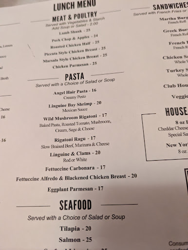 Read moreI came here for the first time for lunch. Was one of the first people in. And was excited to try out a local restaurant. I got the pasta carbonara which included either soup or salad. I had my soup. It was not as I would expect a corn chowder to taste but it was warm and because I was the first one they had not turned the heater on yet. So the restaurant was cold so the soup at least made it a bit better. The young lady who helped me was very attentive. She was very helpful. That's my service. Got five stars. My pasta came out and it had quite a lot of Alfredo sauce which I understand some people very much. Enjoy. The peas unfortunately seem to have been a bit overcooked and the pieces of bacon were not really. What I would think would come into a carbonara but I let it go. I ate a little bit of it and they didn't want it boxed up. I'd been asked a couple times if everything was okay and I said that was fine. Upon receiving my check and looked at it and there was an extra $2 charged for the soup. I looked on the menu online and they also had it stating that when you got the pasta you had a choice of soup or salad. I asked the server about it and she said she'd be back. I could hear her explaining it to another wait staff. They spoke for quite a while and then came back. I was told that it was a misprint and that it was charged and that it was all within. Each item was extra. I showed them on the original menu that it said it was included. I then was told again that it was going to be charged. The manager then let me know that nothing was for free anymore that salads were going up and that it was a misprint. I told her I understood that but when I had ordered I was not informed about that. Even though I had asked a lot about the salad in the soup to make a decision. There was no mention that it would also cost more or that there was a misprint on the website as well as on the menus. She kept saying it's just $2. Not understanding that it wasn't down to the amount that was at it to my bill but the fact that there was no apology to it. They were just so adamant that I should just accept it that I would be required to pay more for their mistake. They repeatedly it was a misprinted non-updated menu and the misrepresentation of what the menu clearly stated. The manager ended up taking $2.25 out of the cash register and the waitress brought it to me. No apologies. No kindness. Nothing. This disheartens me because I would have liked to have a local place to have some...