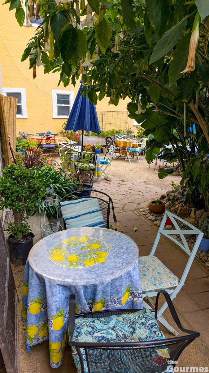 The Nile Cafe amusingly leaves off the “s” of the Niles neighborhood and uses that as an excuse to embrace Egyptian iconography. Around ten tables fit inside the small cafe, but there’s also a patio hidden away out back. I loved all the vibrant colors throughout.