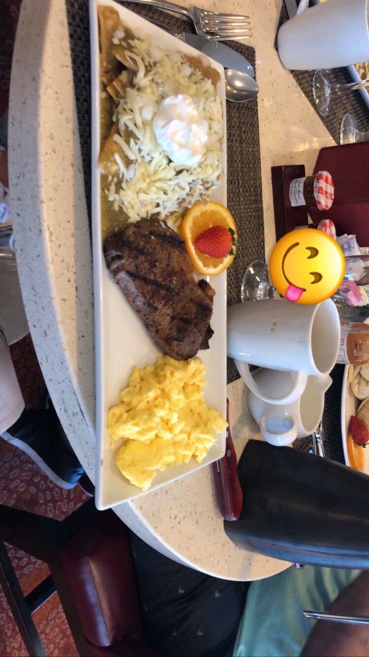 On weekends, guests can opt for the buffet which features made-to-order omelettes, scrambled eggs, bacon, a couple of sausage options, country fried potatoes, and fresh fruit and anything from the Continental Breakfast Bar. Unlimited fresh juices and coffee (and/or tea, milk, etc.) are included and served at the table.