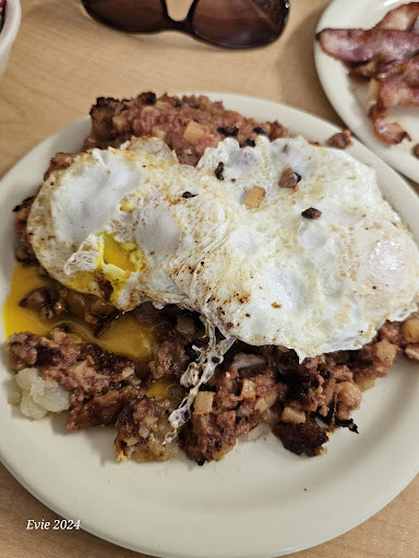 The food was decent. My husbands gravy to me looked 'off', but it tasted good. I was disappointed my eggs came on top of my corned beef. I really wish they would have put them on the side, but that is just my preference.