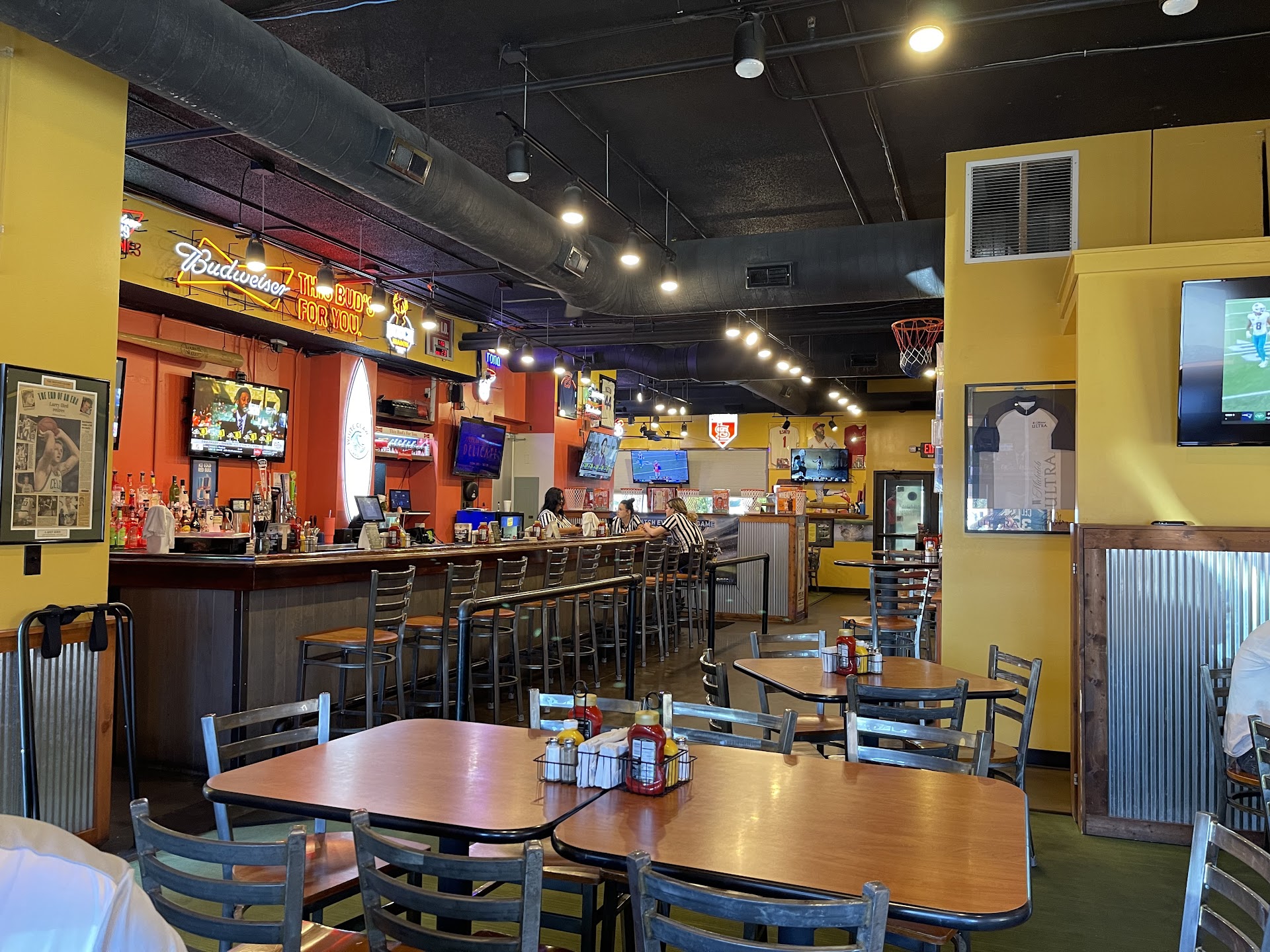 This is literally the first time I have ever written a negative review on google! If I could give zero stars I would! My mom, my 2 year old son, and I went here for dinner. There was only a hand full of other patrons. They had 2 servers, a bar tender, and a manager who was sitting and watching the baseball game... plenty of staff. We ordered wings and the waitress said “chips ok with that?” I said “what are my options?” She said “fries, sweet potato fries, or onion rings”. So we both chose fries. I ordered my son a chicken quesadilla. To start off with it was FREEZING in there, but some restaurants are so we overlooked that. We waited 45 minutes and she finally brought out my sons quesadilla. It had barely any cheese. I told her I wanted another one and also asked if our wings would be ready soon. She assured us they would be out soon. Meanwhile, over at the bar there was a couple guests who had a Chihuahua with them! That in itself was bad enough but then they proceeded to put the dog ON the bar and it walked over to the bartender and she petted it!!! We were just about to leave when FINALLY we got our food. The celery we asked for was not there. I told her to just forget it and take it off the bill. The food was decent but at this point I was too hangry to even enjoy my food. I asked for the manager. I explained the whole situation and he offered 30% off the bill. We get the bill and see that we were each charged $1.99 for our fries! I asked the waitress about this and she got an attitude and stated “it’s on the menu!!!” I said “ok whatever” She then stomps away and comes back over with the menu and shows me on the very back page the sides. I explained to her that I didn’t even look at the back because I was ordering wings... she was the one who asked what side I wanted and never mentioned an upcharge! She continued to argue with me and I just told her to forget it! I also saw that we had still been charged for the celery she didn’t even bring us! She told me she would not be able to take that off. I DO NOT...
