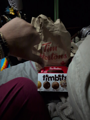 Staff has always been friendly when I went in, so I give them 2 stars. However, they arent 24 hrs. I went in one morning on my way to work and got there at 4:55 am. A worker came out and told me they still had 5 minutes before opening. Some of the staff members are absent minded or they need to be retrained. A few times I have gone in before work and my order has been messed up(ordered a an iced vanilla coffee and it tasted like...well,..idk what the taste was. Chemical?; usually the wrong coffee every time). I'm not one to have them remake the order bc 1.im trying to get to work and 2. Its 5 am...let's be real people not everyone is going to be bright eyed and bushy tailed. But went in last week and granted it was 9 am but the order STILL took forever with a full staff. I waited probably 10 minutes for Tim bits when I got my sandwich and coffee right away. The Tim bits weren't fresh and everyone was standing around and simply chatting. Even with other people waiting. That was...