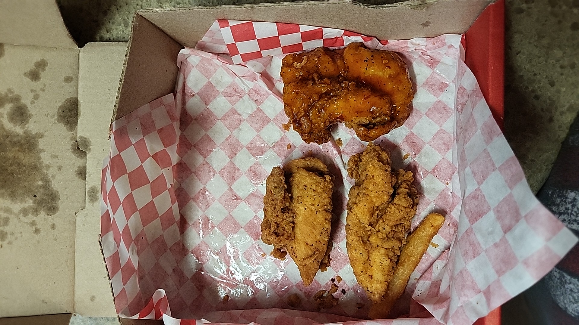 May 4: Ordered the traditional wings parm garlic and they were fabulous! Fries nice and crispy. $15 for 6 piece meal. I ordered 5 tenders with slaw and the Slaw was dry, the portion was tiny for the price of a meal at $15. Also can’t believe the tenders don’t come with a free sauce ($1.19) Staff seemed frazzled and it didn’t appear they were being helped by anyone or management. There was no ice in ice machine. It will take time to iron out the wrinkles but the wings are 10/10! A lot better tasting than wing stop. For 6wing meal and 5 tender meal, with 2 sauces $32. They do not have...