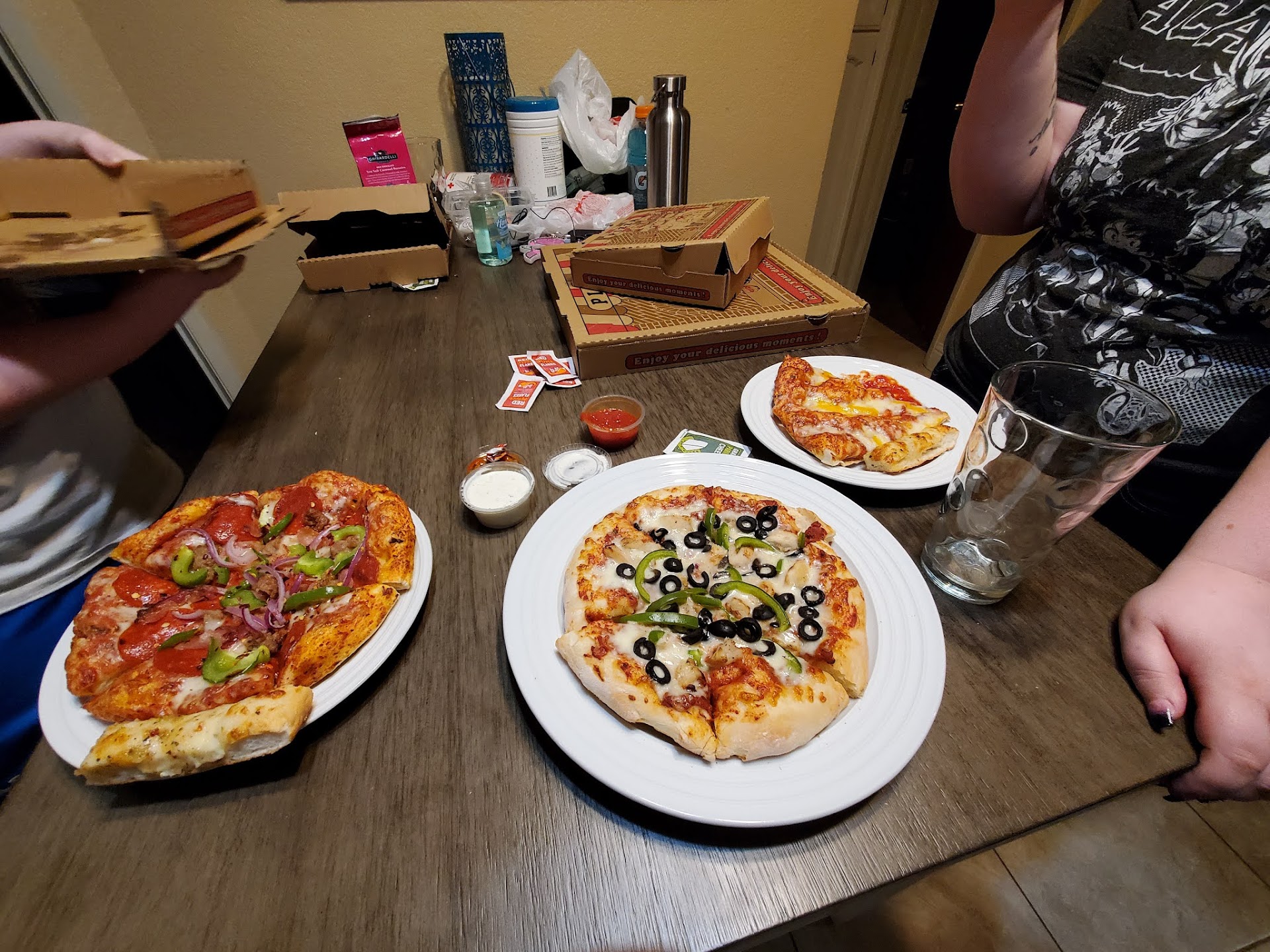 Read moreThe pizza was a bit hard to bite and I noticed the toppings came from a bag ( not fresh) as a previous post read. There were 8 of us who shared a whole pizza and there was half left over so that speaks for itself. The area is a bit rough there were many smoking blunts in there cars and in the parking lot near there cars it was very strong. The staff was very nice and friendly so this should be known- its just the pizza, cheese bread and calzone that was not to our liking. We all sat down and did a taste comparison to me n eds and we all agreed picking the same pizza place that tastes best- pizza hut wins for chicken wings. I would recommend getting the dough less rough- now take into consideration there were 6 adults and 2 children reviewing this pizza....
