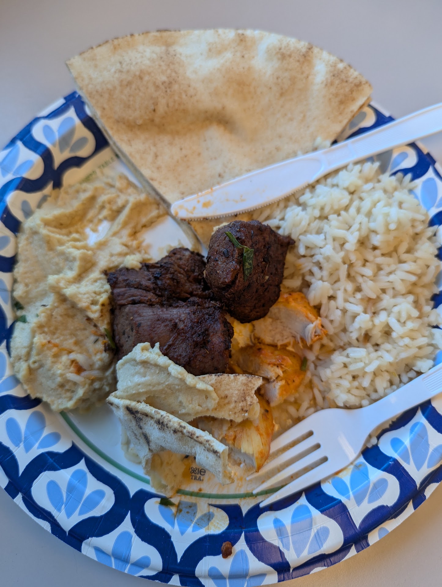 Alla's catered lunch for my office and WOW the entire office was quite impressed. Everyone was asking for the name of the restaurant that catered and wanting to know the location. We ordered Alla's catering for an office lunch. We got beef, chicken, rice pilaf, hummus, pita bread and salad with their homemade vinagrette and everything was absolutely fantastic. They deliver and they were prompt. All the food was hot and fresh and so flavorful. Both the beef and the chicken were very tasty, flavorful, not dry, very moist. Pilaf is delicious without being too greasy feeling. Hummus was delicious and a great consistency. Salad and dressing was very yummy and refreshing. Garlic sauce was delicious as well. 10/10 would absolutely recommend...