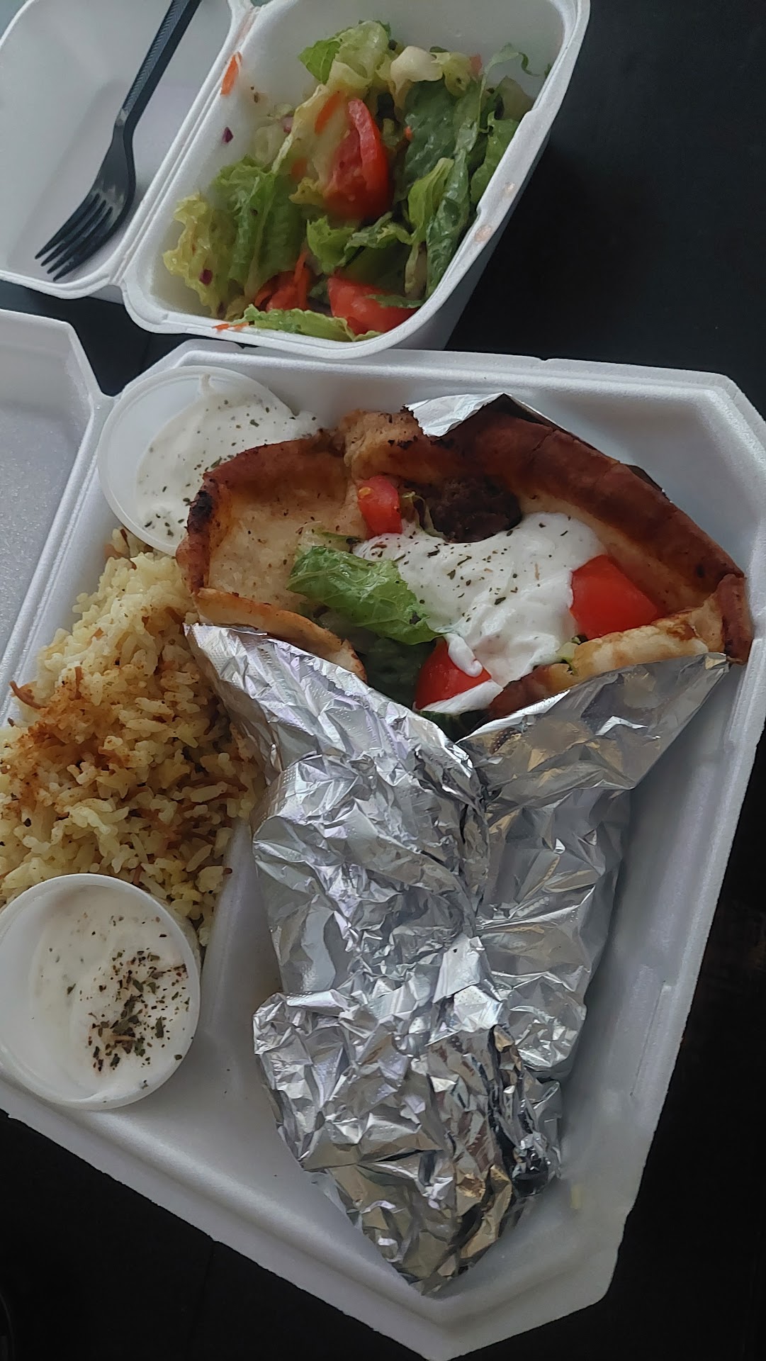 Read moreI found this place searching for something new to eat around here in Fresno! This place has pretty good reviews for their Gyros so I had to try it out. Walking in, it is very quiet and clean. Considering the reviews, I am hoping the lack of customers is due to me being here at dinner time on a Monday night. I ordered a lamb gyro (disappointingly it is not cut from a spicket), with extra tzaziki on the side. The lamb was cut into large chunks. The flavor was okay, but was missing something. Not to be a stickler, but I was the only person in the restaurant and I definitely heard a microwave opening and closing and a few seconds after that received my order.