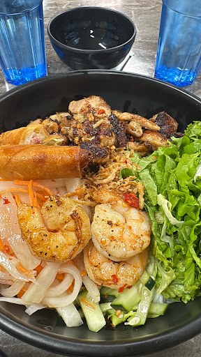Not going to lie. I was like hey this place is new let's give it a try, I'm so upset at myself for coming here but I gave it a chance and tried something new. The atmosphere was the best part of this visit. Except for the fact they had a movie and music playing at the same time. It's one or the other not both especially when the sounds are overlapping with each other. My friends with ADHD will have trouble focusing. The food was terrible. My bahn mi meat was cold and fatty. I asked for grilled pork but it felt like I got pork belly instead and it was cold like it was just sitting. The spring rolls are just a mess no cucumber no cilantro, no flavor. They only have shrimp spring rolls not pork. The egg rolls were more like lumpia which I'm not sure if a Vietnamese egg roll is the same thing but I was not looking for that. It seems like they specialize in drinks and not meals or food items that need preparation. Today they had family members coming in and out of the place and going into the kitchen. A girl in her pajamas and not the server, handed us our egg rolls which was really weird. The family members were going straight into the kitchen. Hands are not washed after interactions at the cash register and the waitress then hands dine-in customers their food. I will not be returning here as there are plenty of other feasible options for...
