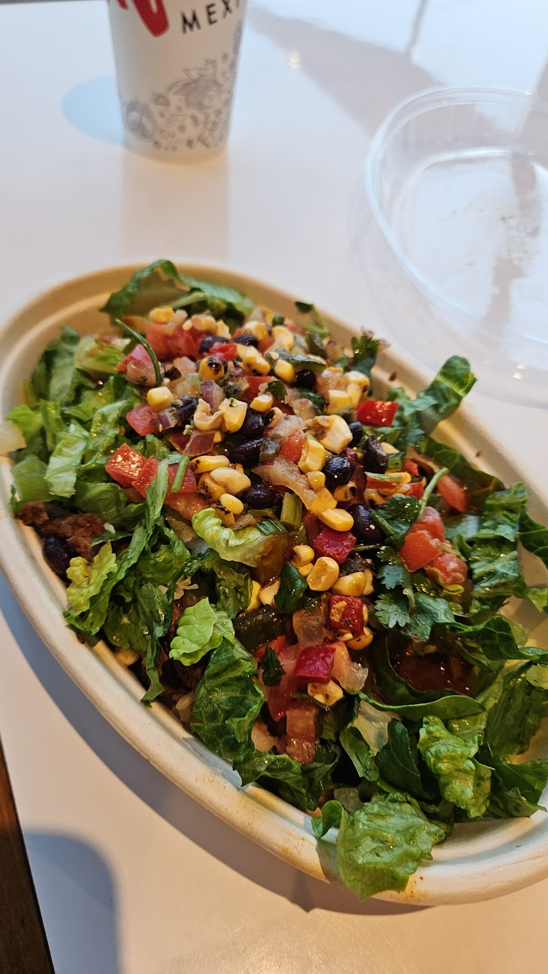 Ā Ā Ā Read moreThis is another pseudo-Mexican, walk through newer style-buffet restaurant. Theyāre everywhere. No servers, just a kid behind the glass asking what type of meat you want, guacamole or pico etc. the food is not bad. Itās not a good taco truck. Itās not actually what I would call Mexican. The portions are large. The salads are thrown into a large flour tortilla sitting inside an aluminum tin that gets covered with a hard plastic cover. (All the food is served in the tin).Annoyingly large torn lettuce that has to be cut by you. Staff must think that every customerās mouth is the size of a horse. It just screams, ā I donāt care about preparation or presentation of foodā. Itās prepared in such a rush to feed the masses. Oh well. At least the ice for drinks is a soft...