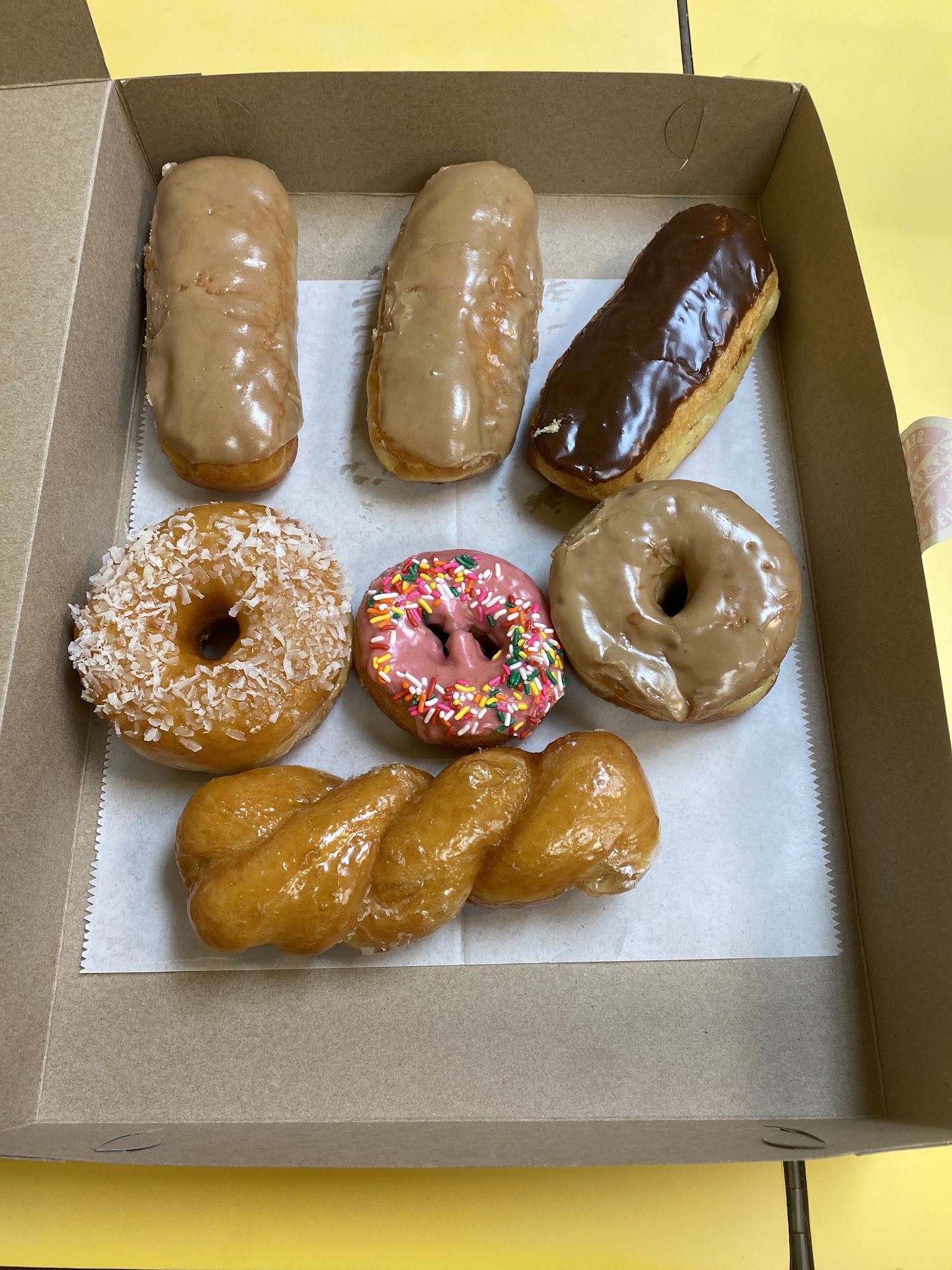Best donuts in town bar none, and probably the region. The Chocolate Old Fashion are their specialty. .. the chocolate is some wonderful recipe, not the cheap icing you might find at other donut stores. The Twist Bars are light and fluffy, wonderful texture.