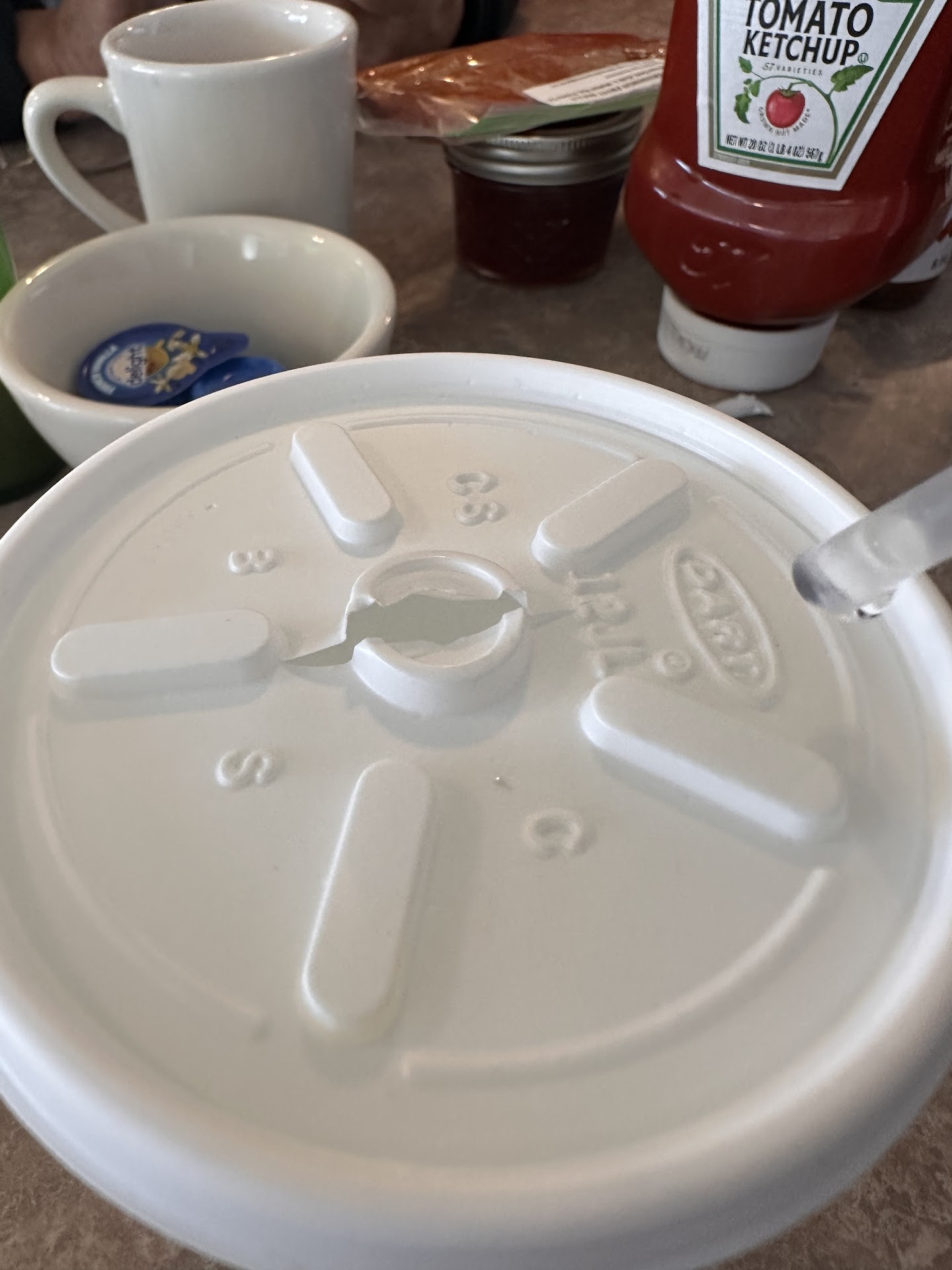 Read moreDrove up and saw parking lot is empty, it never has been in all the years Iâve been coming. I knew something was up. Then seated by wonderful servers, nice and friendly. But there was a TV that was blaring and we couldnât even hear one another at the table. As an advocate, species needs familyâŚ. This is what gets me, the plastic lid for our grandsonâs juice weâre not designed for opening. Clearly these were coffee cup lids to go. Cheap⌠so now we needed to cut through the lid to make an opening for him to drink his fluid safely. I asked to talk to owner, she never came to table. Now sadly, what she doesnât realize is that as a patient safety advocate for a local hospital, for children, she could have learned something. What a liability if someone cuts themselves by trying to make an opening for a kid that could have been prevented by buying the right lids in the first place. Business woman to business woman, at least take the time to listen to your customers. I care about our childrenâs safety, no one needs to go to a restaurant and cut themselves trying to simply drink their fluids. See...
