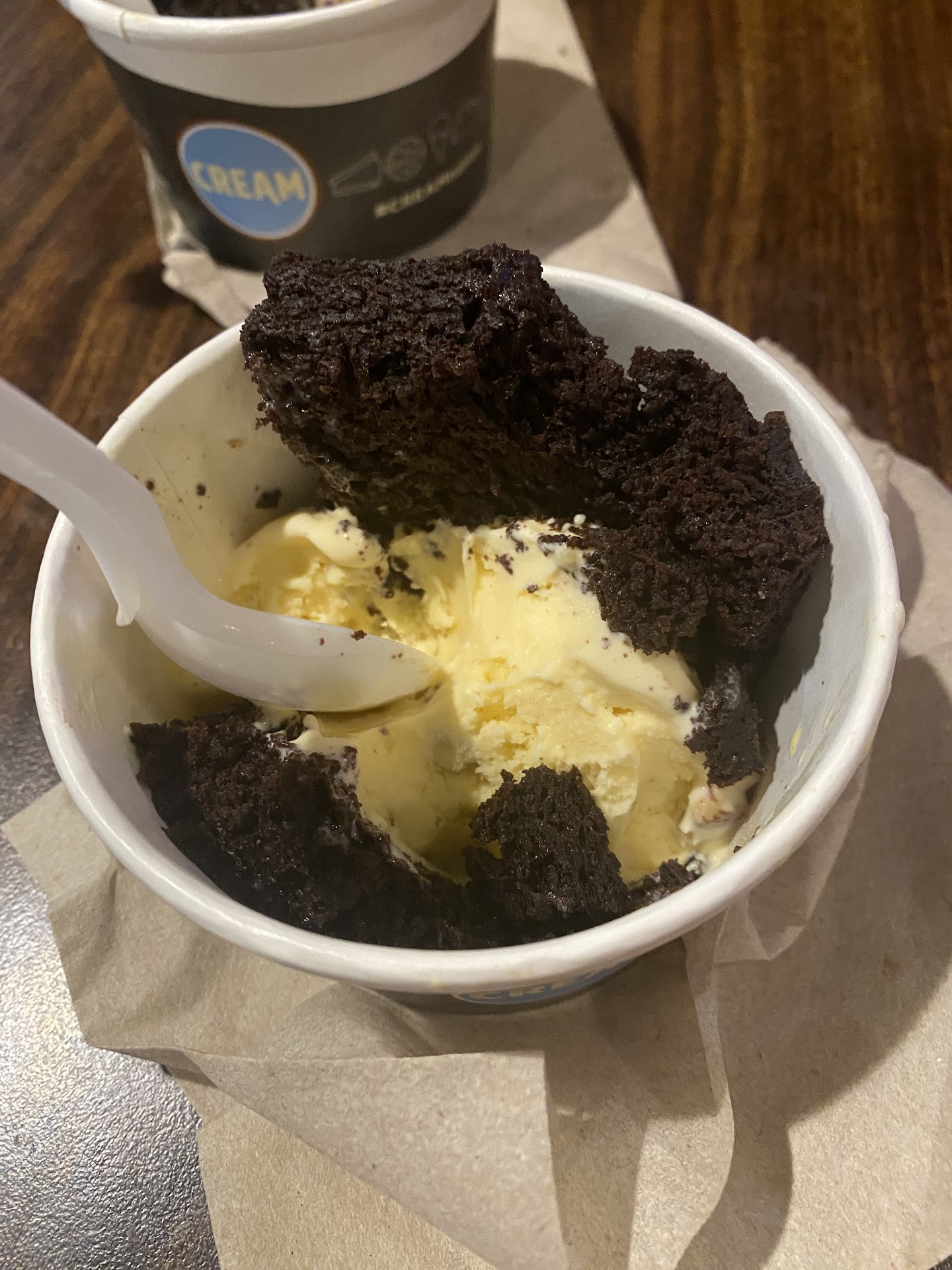 We were severely underwhelmed by the quality and price of the ice cream. We ordered 1 brownie sandwich and 1 brownie sundae for $18. The brownies themselves were the worst part, they were both extremely greasy and dry at the same time. They had little to no sweetness, and were âwarmedâ in the oven only to be served to us cold.