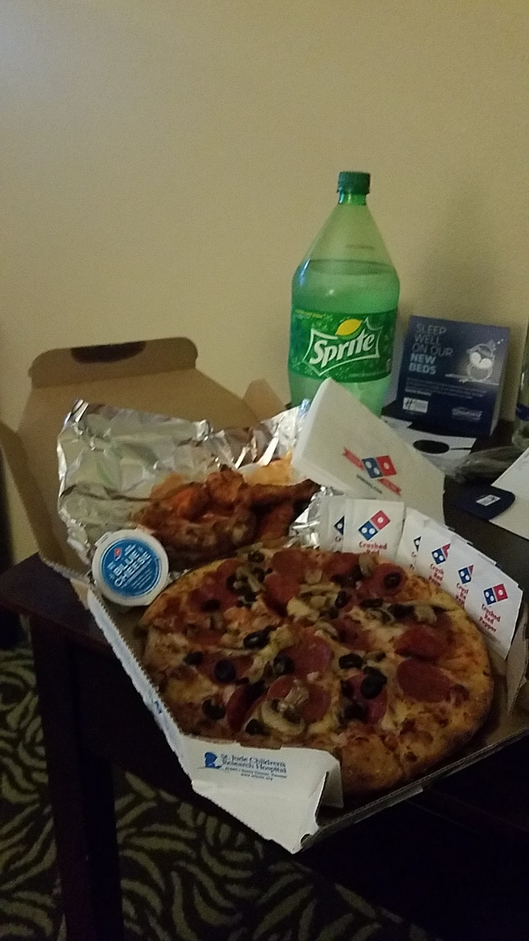 After having such an amazing experience at dominoes last week I was very looking forward to a great dinner of the exact same thing repeated. I gladly paid the $50 for dinner because I knew I would enjoy it however I was disappointed like every other time I’ve had dominoes. I guess the last time was just a fluke. I ordered two medium pizzas both with two toppings my thin crust pizza is cut into squares and has some basil sprinkle on half of it and my pan crust pepperoni pizza that I paid extra for both types of cheese and just pepperoni is not even fully baked and they only use the asiago cheese which was the topping I chose not the cheese selection. I also ordered two garden salad with Caesar dressing. I was sent to Cesar salad. The lettuce makes a difference. I haven’t even opened up my cookie because I’m sure it’s going to be either overcooked or undercooked at this point from everything else.