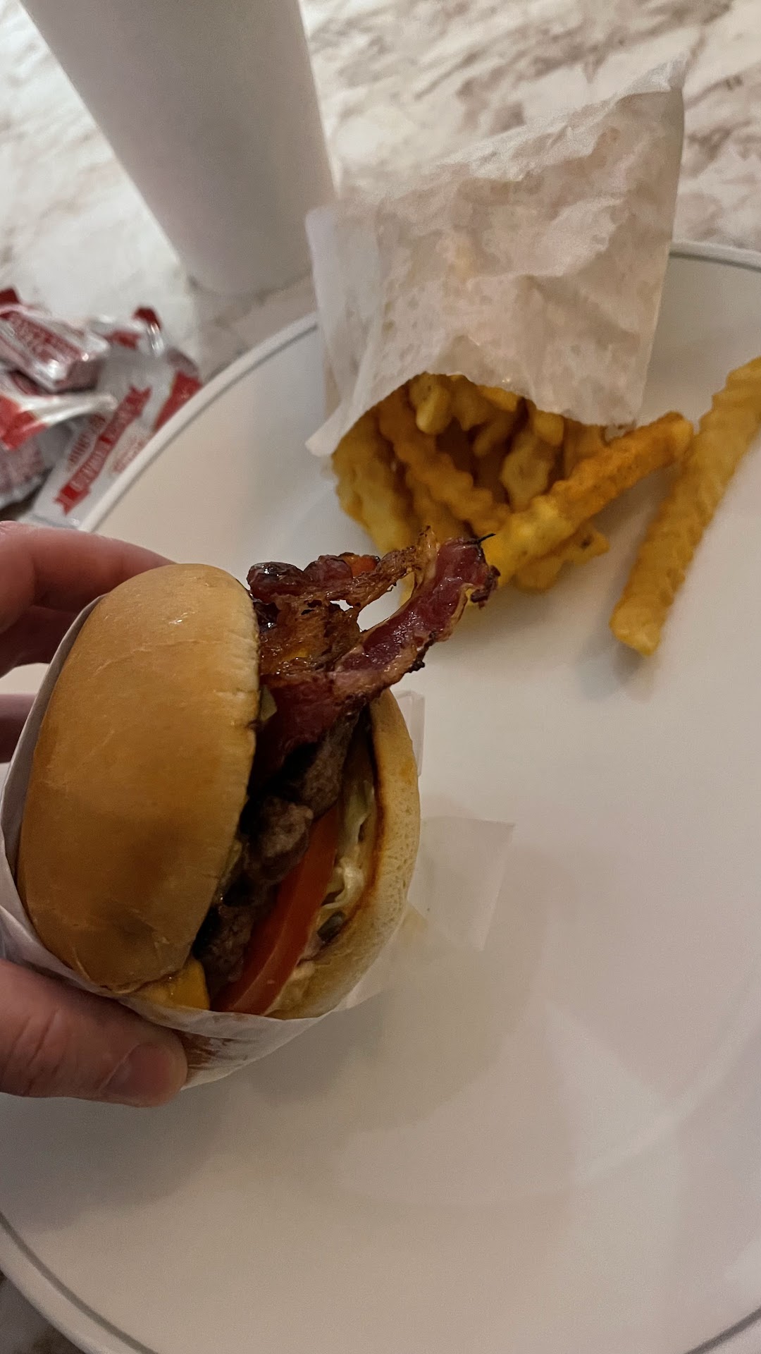 Martha and I decided to check out Fancy Burger for lunch after hearing a few people rave about it—and wow, we were not disappointed. From the moment we walked in, the experience was smooth and inviting. Even though the Drive-Thru was packed with cars (understandably—it was right in the middle of the lunch rush), the dining area was calm, spacious, and impressively clean. No sticky tables or chaotic crowds—just a nice open space where we could actually relax and enjoy our food.
