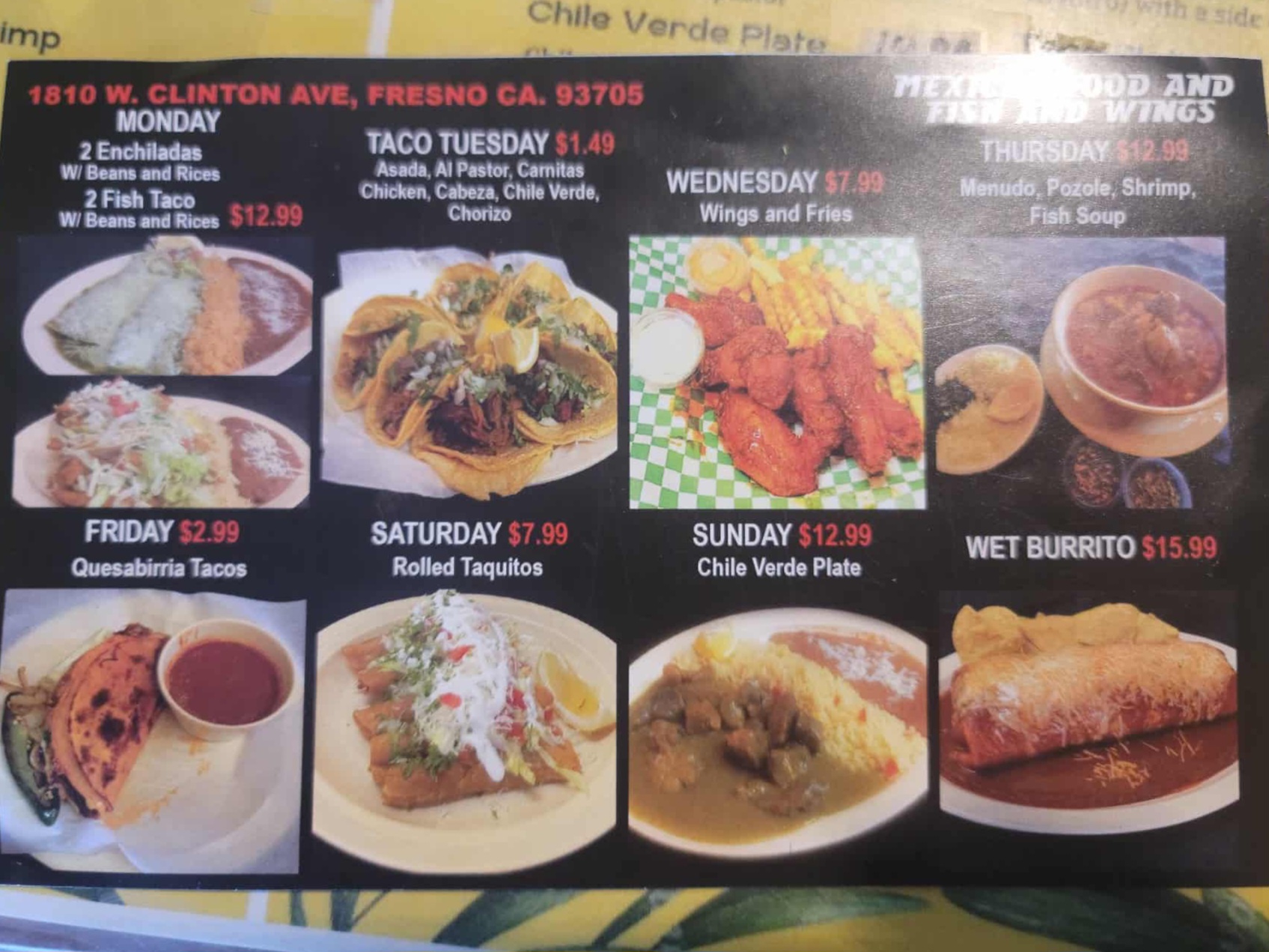 Read moreHubby and I decided to try Fish and Wings at 1810 W Clinton Ave for breakfast today. They are a Mexican restaurant, but also sell wings and fish and chips. We've driven by it many times when going to Vallarta. They always have a sign out front for $6.99 breakfast burritos. From the outside it looks pretty small. Once inside it's larger. The owner was extremely friendly and kept checking on us and chit chatting.