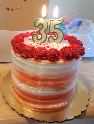 Read moreMy husband and daughter went and got a cake from here yesterday for my birthday. I dont ever get cake from anywhere else, but WholeFoods, but they don't know that as they are new to this town so they decided to get it from here. When I went to eat the cake, you can tell the frosting had been sitting on the cake for more than a few days. If you had cake sit out for a week or so, you will know what I mean. It becomes this sticky, rubbery feeling. When I proceed to eat the inside, it was dry and stale, again, as if the cake had been sitting out for a while. I wanted to return the cake, but my husband already threw it in the garbage. I'm not sure how much was this cake. Maybe $35-$45? It was red/ pinkish, maybe 8 Inch round cake with 3 or so layers? As you see in the photo, I took a piece of the frosting to taste it.(I always do this to cake and cupcakes to taste the frosting) This was before I took a bite out of it. It's pretty, but probably one of the worst cakes I ever ate. **update, i found photos of the cake and as you can tell we dug inside to see if the inside was soft, but it was...
