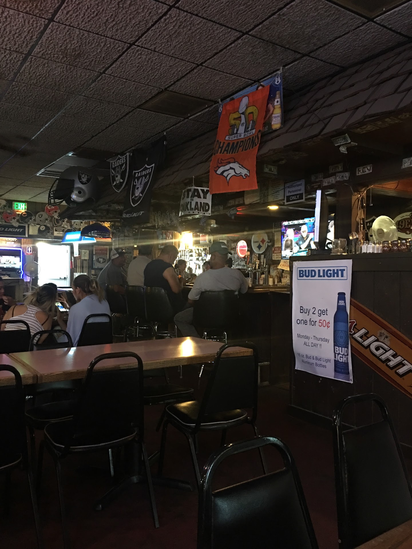 Gametime Pizza and they had to be asked to turn off the music and turn on the volume to the football game. facepalm