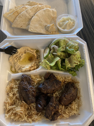 The food is delicious and fresh. I got the boneless beef plate. Comes with several pieces of meat(cooked and seasoned amazingly), salad, hummus, pilaf, and pita. I also had a small container of garlic sauce.