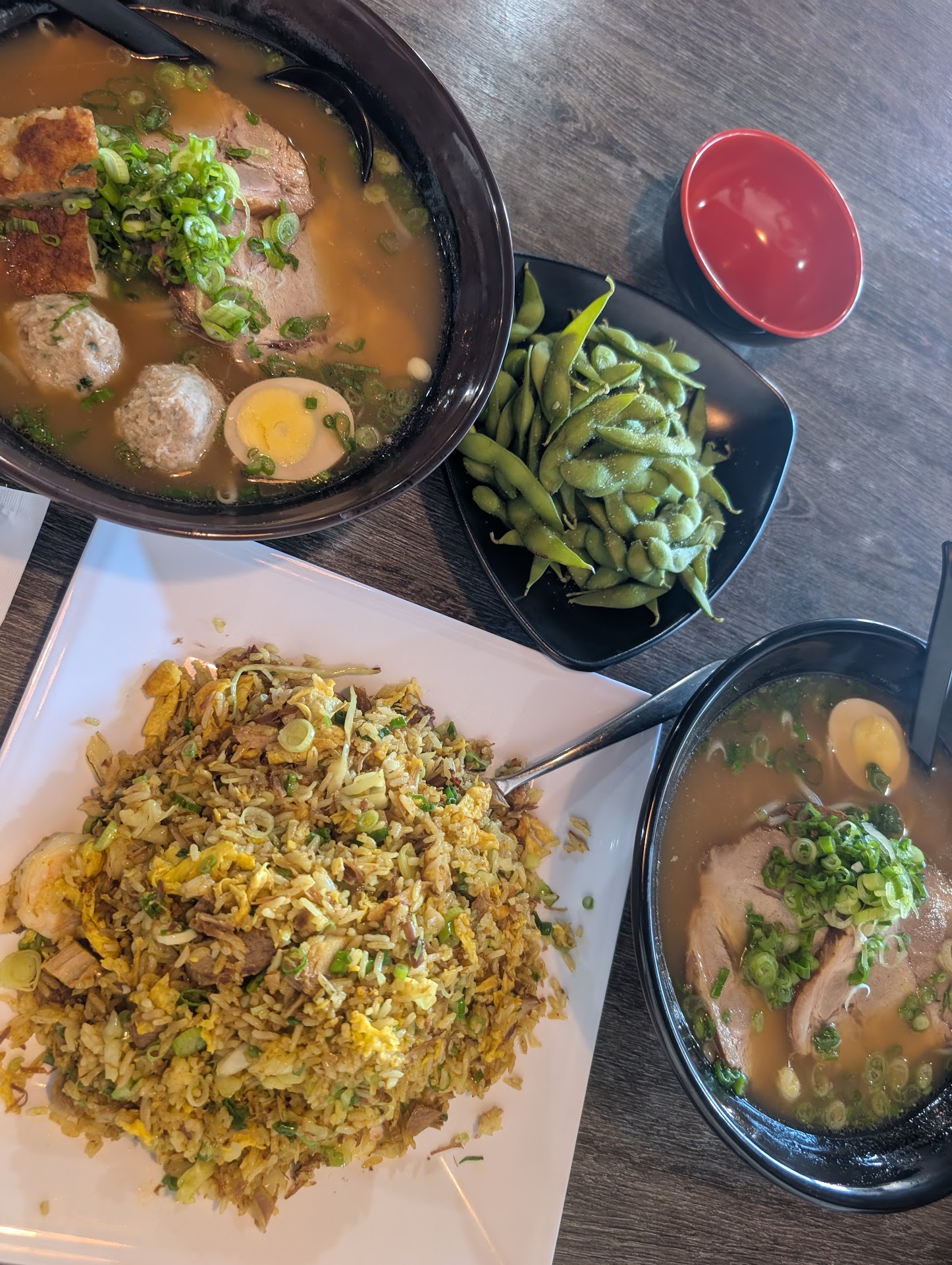 We ordered two bowls of ramen; the chef's special ramen and the shoyu ramen, the curry fried rice, and a side of edamame.