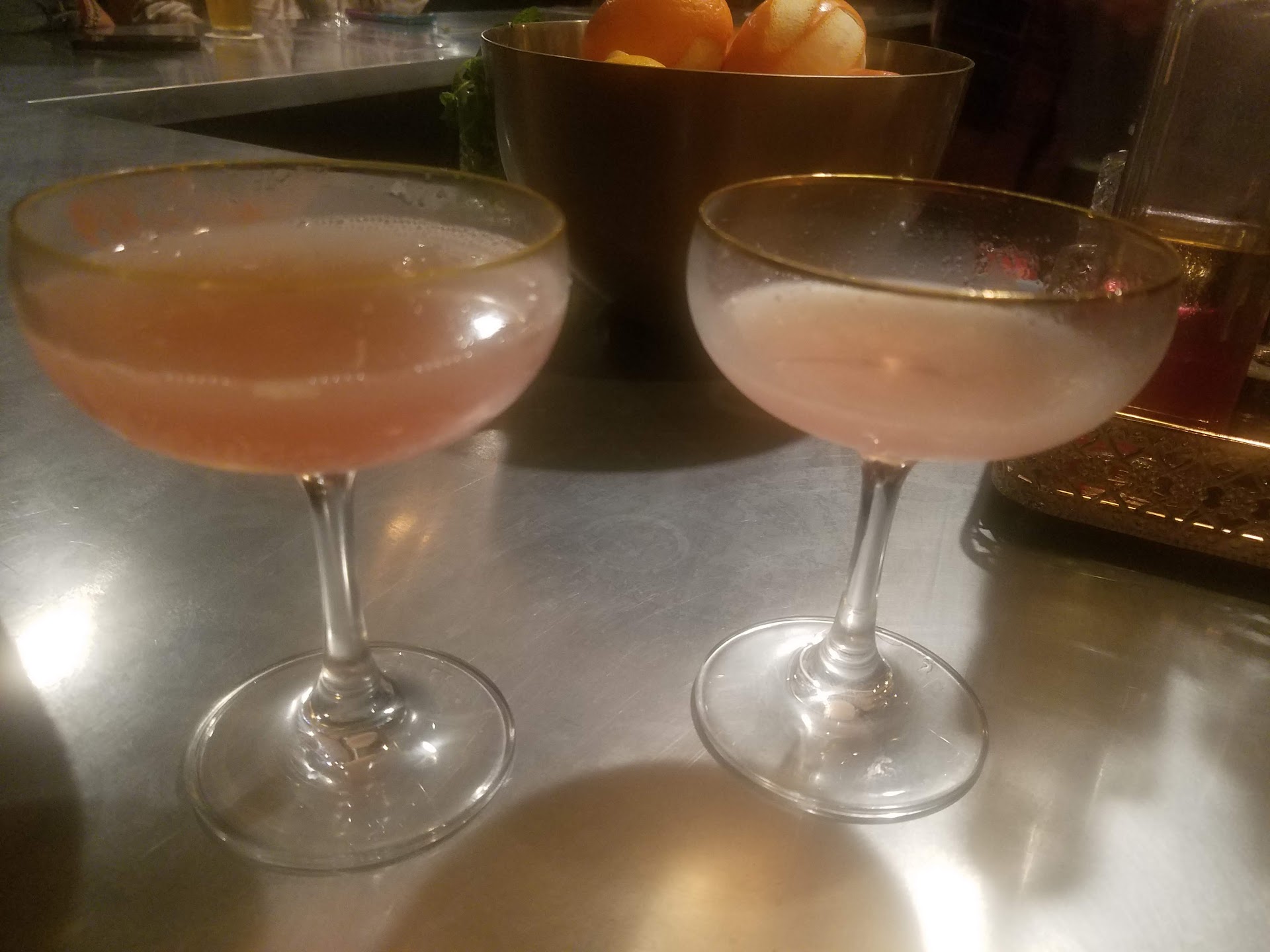 Ā Ā Ā Read moreAesthetically pleasing choice for some drinks. I tagged along with my ex and his coworker for a Friday night out and this place was our 2nd stop of the night. I hadn't heard where we were walking to so when i got inside, i was pleasantly surprised. It reminds me of hotel congress in Tucson (where Dillinger had a firey standoff) but this is glitzier. Although I sat at the bar, the plush chairs and long couch like lounge to the rear of the bar looked so comfy and inviting. The drinks were superb. Their specialty accoutrements looked like an apothecary! Herbs & extracts & specialty touches... My Moscow mule was divine! I unfortunately had to trade it with my ex because his friend got him a vodka tonic and he hates tonic- lucky for me it was superb too! Lots of variation in the crowd, which I appreciated. Live music too. There was a beautiful sweeping staircase with dark red stairs blocked with a velvet rope. I wonder if it's just a staff area or if it's like detention billiards. The visual details are great and could probably serve to keep you occupied during an uncomfortable date- maybe even keep the conversation flowing. There's a nice little private outdoor area off the front of the music side where i was able to vape...