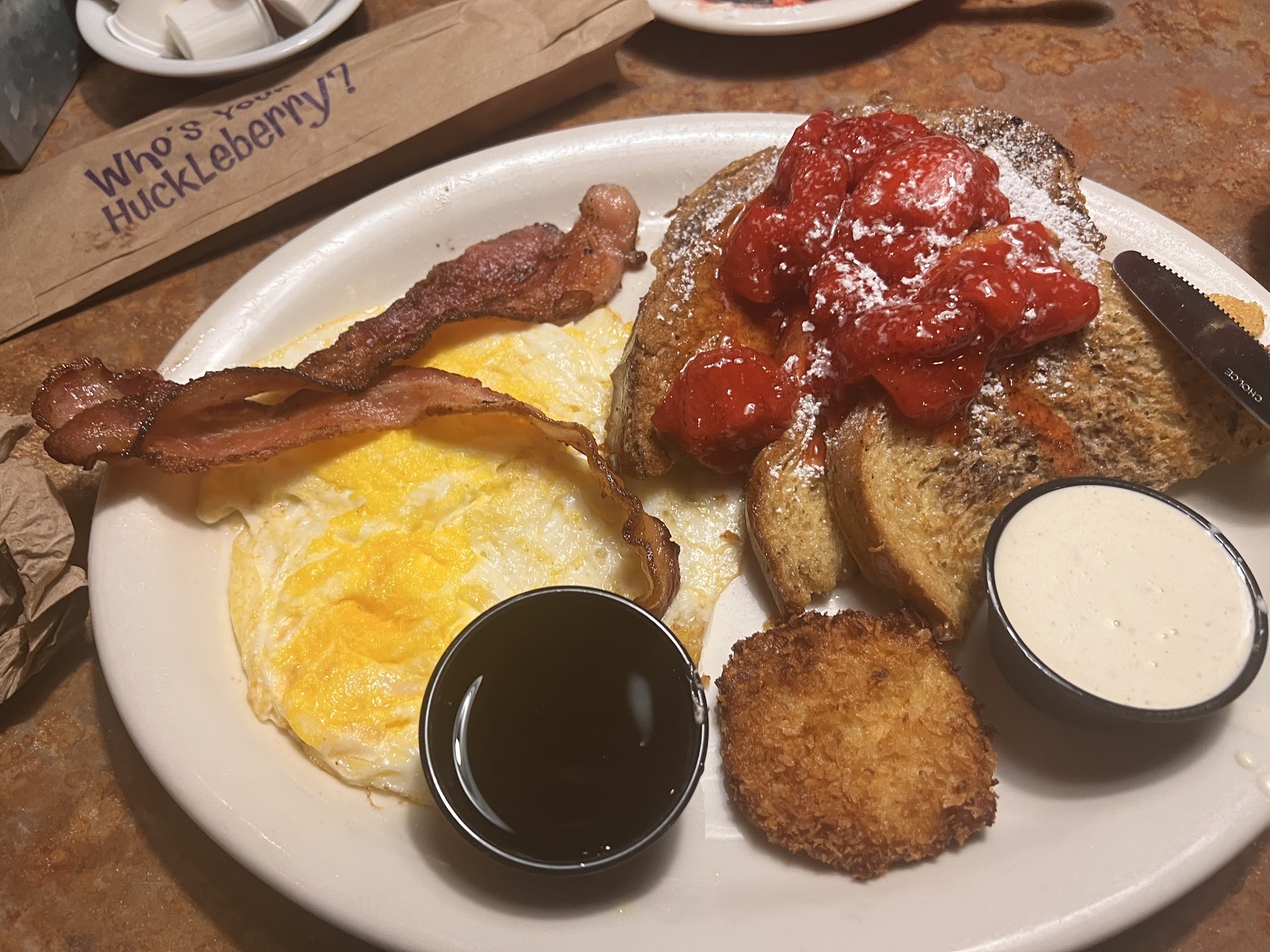 Read moreOnly having a breakfast and lunch menu was just a little disappointing I was hoping they were open for dinner also like the other one on Bullard and 41 has been I'm not sure if it is during this time now. I had a waffle for breakfast with the huckleberries and I was a little disappointed that my Waffle came warm and the huckleberries were ice cold. I've gone to other places that serve a blueberry topping which is more like a compote and is warm and didn't make my Waffle get cold in a matter of a couple minutes. My husband's breakfast came without the ham and we had to wait for the ham to come out in the meantime his eggs got cold and of course I would sit and wait for him to get the rest of his breakfast before I started again and he was very disappointed in that to have to sit and wait for the ham to come out to our table. I think we'll give him another try I always have enjoyed eating at huckleberries but this was just a little...