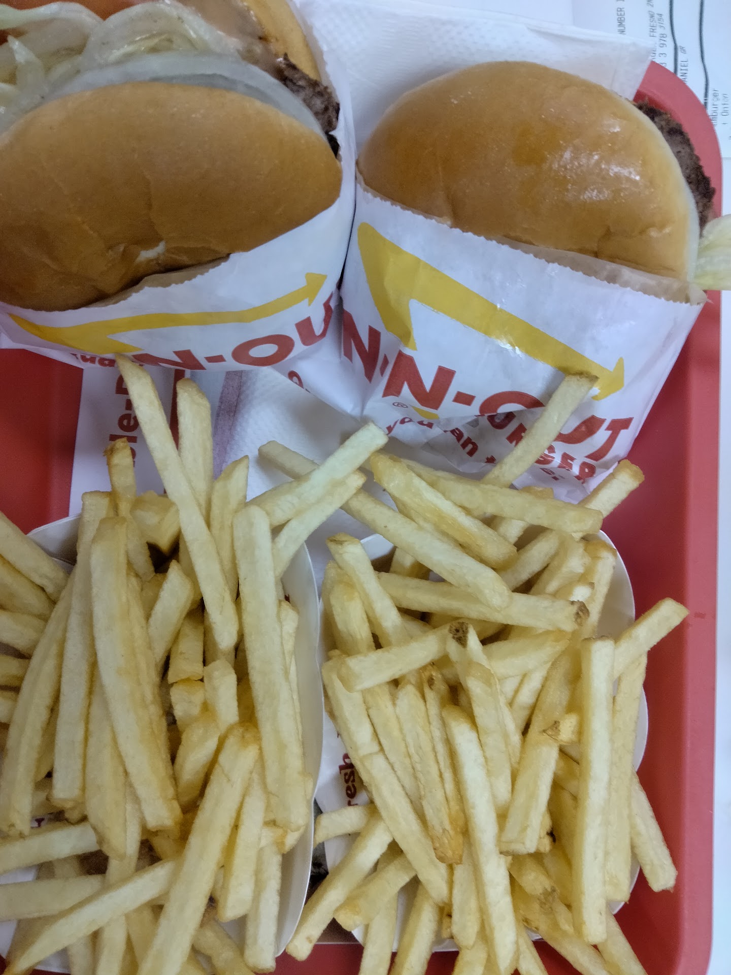 Food: 5/5 I really like in n out. The burgers are great, the food tastes fresh, and you know you can expect it to be consistently quite good. The menu options are small but it can really cut down on the information overload and general overflow of low quality menu items like some other places often deal with.