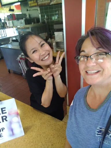 So my kids and I stopped for lunch at this Jack in the Box, on our way back to Idaho from California, because it's was the first place we all agreed uppn. We don't particularly frequent JITB more than other fast food places, but we might if they were all as great as this one. When we walked in, we were greeted by a nice lady who checked to see if we were ready to order. She was gracious and kind gave us more time because we were not ready. She put up with us needing to use the bathroom (which she had to buzz us into because doors were locked for customers only). She waited as we looked over the menu. Made kind small talk as we tried to make up our minds. All the while.... Waiting for us with a smile. Her name is Kay. I'm assuming she is a manager/shift leader because her uniform set her apart. She kindly took our order, was pleasant when my credit card was denied (I'd already maxed it out from our vacation) and quickly got us back on track and our order completed. Kay not only was delightful, but she went above and beyond. She paid attention to what each of us ordered and bagged our to-go order individually so we each had our own bagged lunch. Not only that, she also wrote on each bag what the contents were. Thanks to her we didn't have to half open each sandwich to figure out whose was whose. And...... She thought it had taken too long to get our food she gave us a complimentary order of churros. We actually thought it was faster than our wait at local Idaho JITB's and we're surprised she thought it had taken a long time. We were so impressed with Kay's customer service!!! She was friendly, polite, genuine and offered quick, efficient service above anything we've seen in a fast food establishment. So if we could go back to be served by Kay again, we would. But... As we live in Idaho, we may never see Kay again. If you stop at this JITB tell Kay hi for us and...