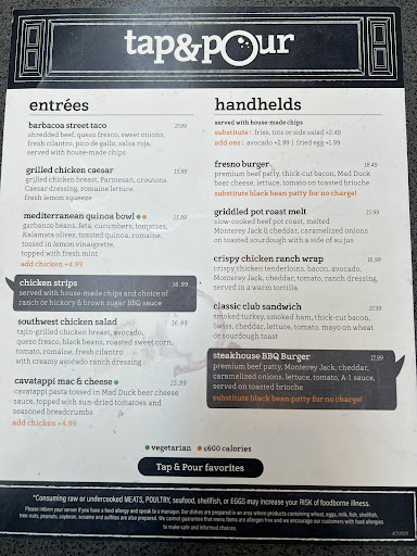 Read moreThis is the only sit down restaurant within the secure area. It apparently was named John Muir Tavern in the past, but changed to Tap & Pour in fall 2023. At 9:30am on a Friday in early November, there was plenty of seating. Note that even though you’re handed a comprehensive food menu and drink list, breakfast food is all that is served before 10. Not a huge menu, especially if you have dietary requirements. I went with the toasted breakfast brioche. It was actually better than expected, with a fresh enriched bun, egg (I asked for scrambled), bacon, and cheese. Tater tots were on the side. The meal was supposed to come with salsa, but it was left off, and I wouldn't have used it anyway, so no problem there. My order came out in a plastic to-go container because the dishwasher was being repaired at the time. It was a proper carb load to help me get through the first log leg in a day of flights. The overall service was good, with the food out in about 10 minutes. The check was fast, too. That attention is much appreciated in an airport...