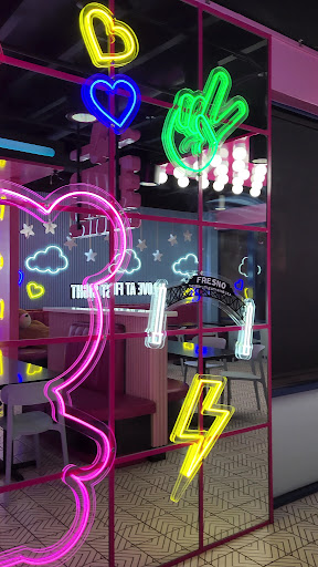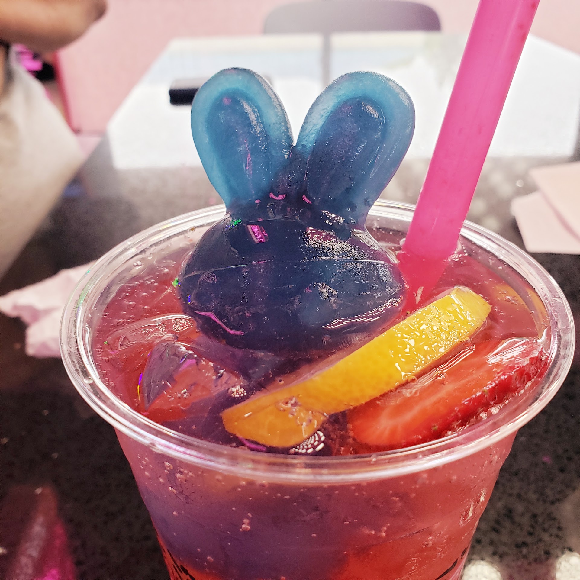 Read moreVery cute shop, perfect for pictures and hangouts. Employees are very kind but things seem a bit slow, however they are a brand new shop so it's understandable, I can imagine everyone is still getting the hang of things. I recommend to go during not-so busy days so your drink will be ready quicker. I Ordered a Nutella Chimecone, a Mocha boba, and a Strawberry Italian Soda. Can confirm, bears and bunnies are NOT colored ice water. They seem to vary depending on the drink. Some are frozen jelly, Others are like frozen colored tea. The bunny in the picture is frozen jelly which was squishy inside. It's sunk because I forgot to take a picture before stiring the drink and the clear lid was removed by me. Strawberry slices were fresh and tasted great, the popping boba was my favorite. The sprinkles and Nutella on the chime cone gave the creamy vanilla ice-cream great flavor and texture. One my favorite ice-creams in a while. I didn't try the mocha boba, it was my mom's but the bear was cute and delicious! Store was nicely cleaned and everyone on the team seemed to be doing their work very well. Definitely recommend, more enjoyable if you go on non-busy days as I did. Can't wait to try more...
