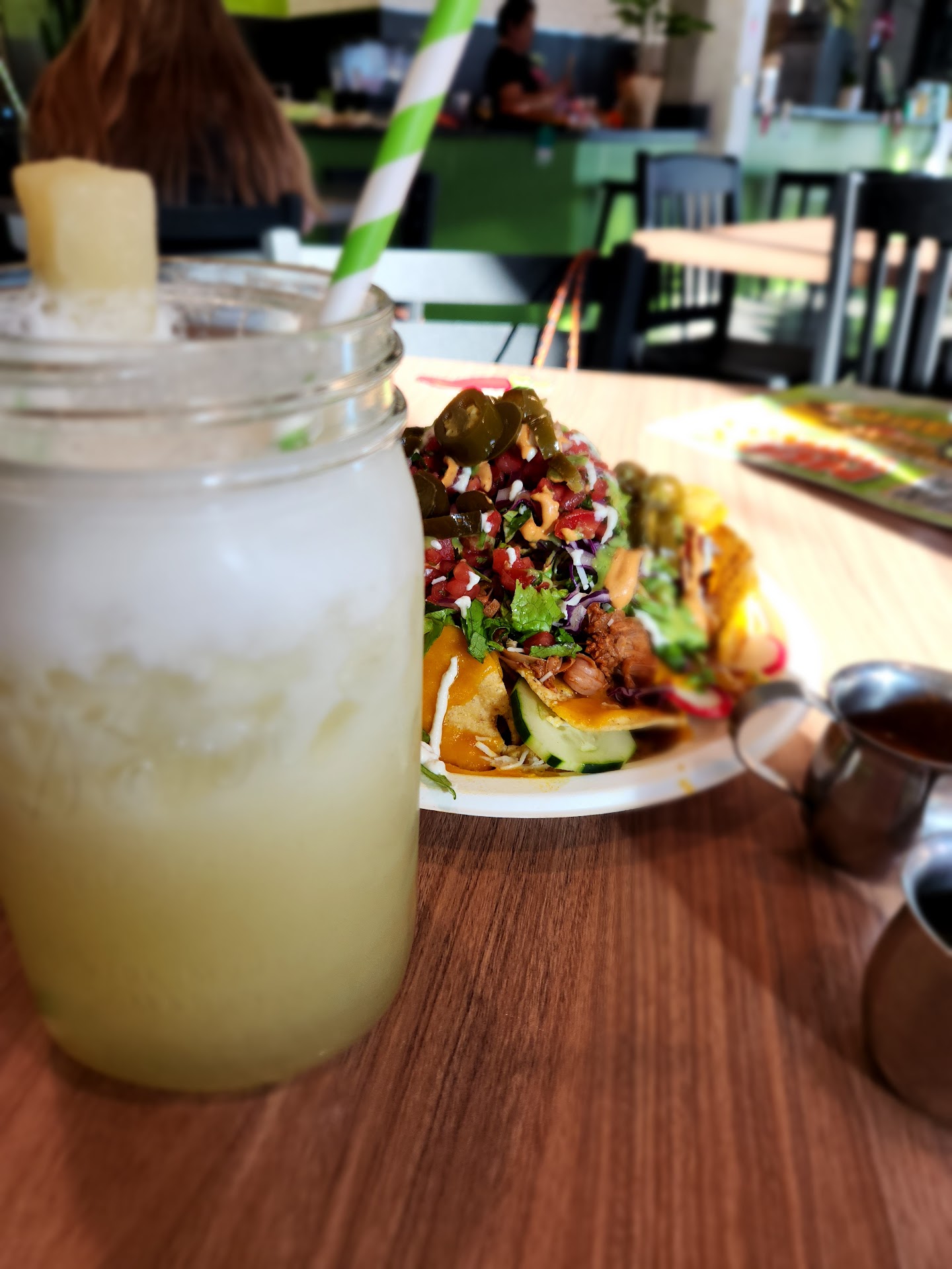 Ā Ā Ā Read moreChips were crunchy and nacho sauce was cheesy but had a little zing to it. I was happy with the vegan nacho cheese, it had a good consistency. Not as thick as regular sauce but it pared nicely with the chip, making each bite juicy but not soggy. The jack fruit was juicy and almost had a meat texture but still sort of tastes like fruit. I wish it tasted more like Chile Verde which is what I ordered however, they weren't skimpy with the " meat ",: so it added nice aesthetics to dish and got me nice and full quickly. Pico de Gallo was fresh and had a lasting flavor that makes you want to go home and come up with your pick de Gallo out of sheer inspiration. Service was a little slow but we're just happy they had a card reader since we forgot...