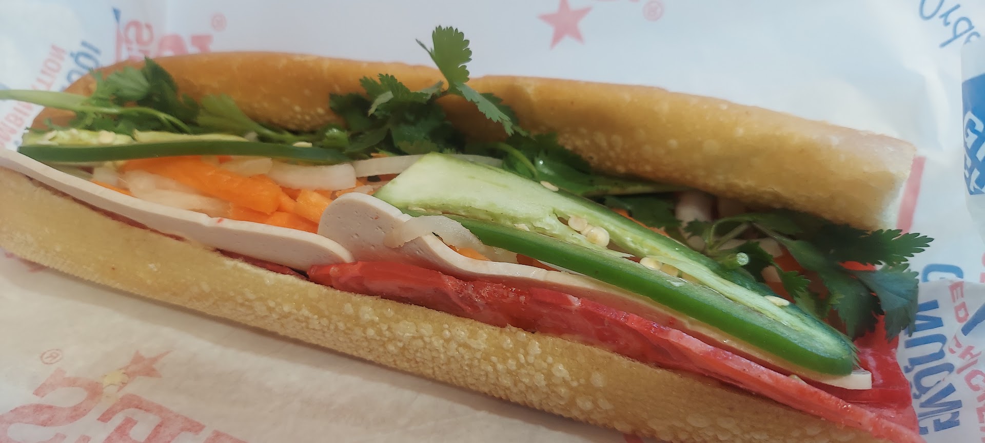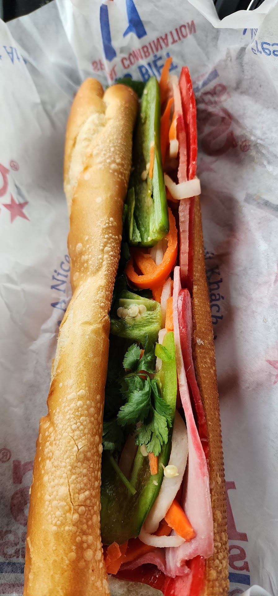 Got the combo banh mi sandwich and chicken banh mi. My combo sandwich was OK; it was definitely not the best banh mi sandwich I've ever ate. I feel the sandwiches are very Americanized. Paid approximately $7 a sandwich. Good size sandwiches though. The sandwich was kind of bland and had too much of that pig cheese spread or whatever it was in it which i was not fond of.