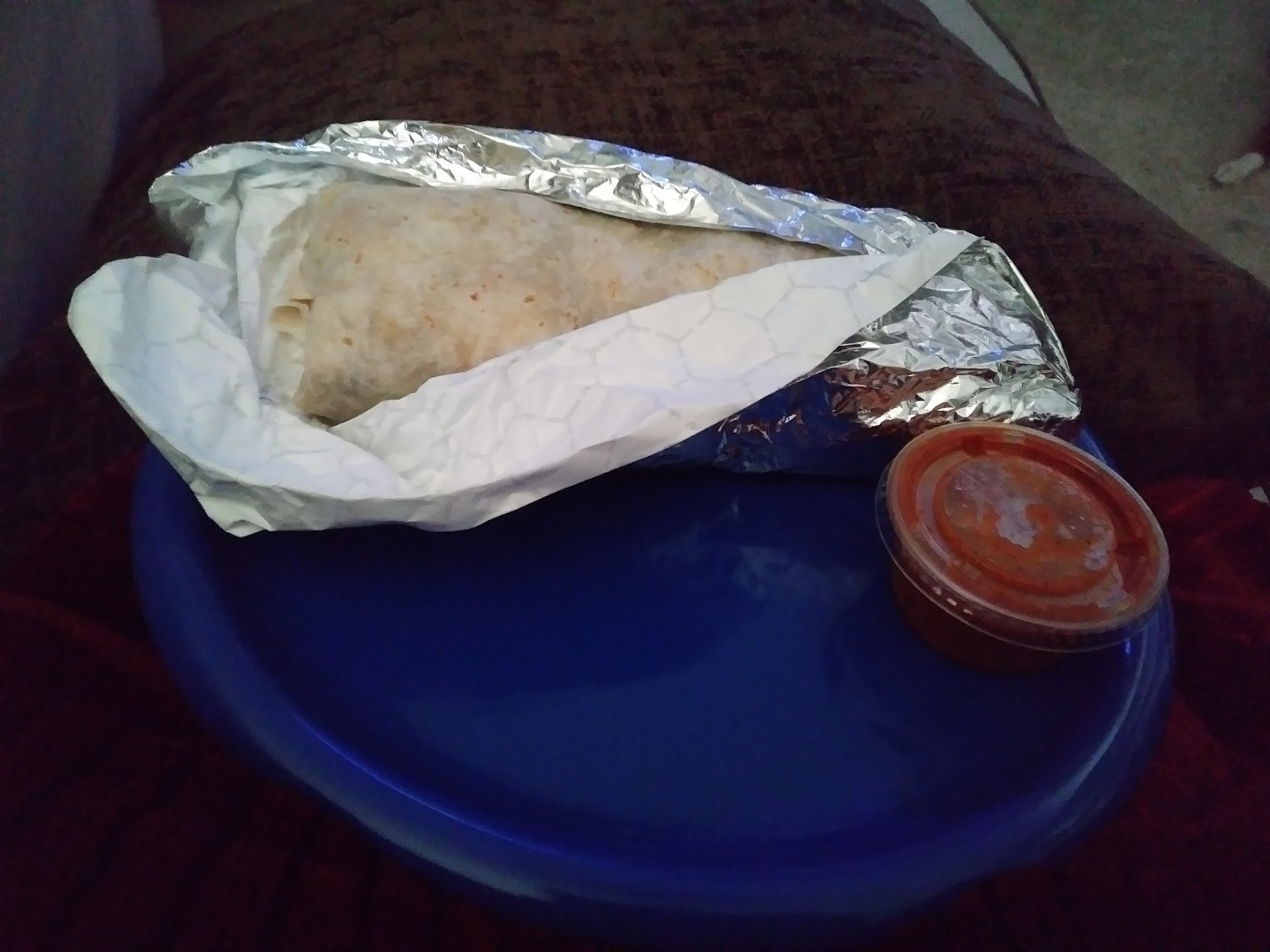 My first thought as I picked up the bag... This thing is heavy! This can't be 3 burritos! But yup... On a visual check, 3 ginourmous burritos. What have I done!