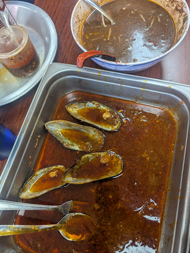 Read moreThat trio platter at mild level sauce and the Thai boat noodle were great, tasty, amazing! The missus was impressed with the added richness of the broth flavor, and as you can see the Cajun seafood boil platter was destroyed as it was delicious. I haven't had this for years and have been craving this Cajun seafood meal so while I'm not sure how much sausage and corn was supposed to come with, I kind of wish I had a little more of both (two pieces of corn, and about 6 slices of small pieces of sausage)... nevertheless, all of it was delicious.