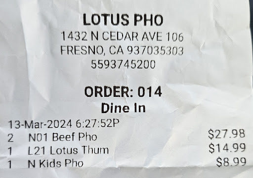 First time here as a customer, experience was good up until we got over charge for something we didn't order. The same person took our order also rang us up. We order two bowl of pho and have ask for a small bowl on the side so that I can share half of my pho with my son but instead we got charge for a kids pho that we didn't order. I was wondering why it cost so much and have ask to look at the receipt. If I didn't look at the receipt we would have left home without getting a refund and of course we did not get refund the whole amount including tax. Not planning on coming back. Make sure you guys look at your receipt and double check that you aren't...